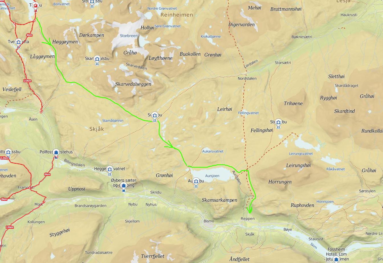 1. Is it possible to pass from Torsbu to Lom like this?