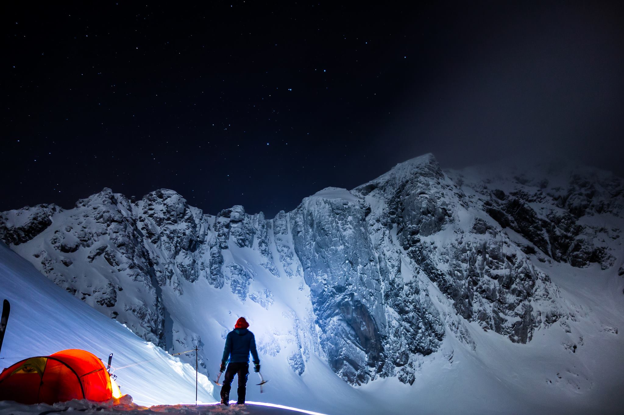Stille og klar natt på Middagsfjellet, Gullesfjorden en desembernatt. Hadde 2 starinlys som brant ved siden av meg gjennom hele natten uten å bli forstyrret av noe vind. Ganske så spesielt når man kryper over 800 moh. Tror jeg kan gå så langt å si jeg har aldri opplevd det her oppe i Vesterålen. Da er det vel på sin plass å ønske alle dere fjellfolk God Jul🎅