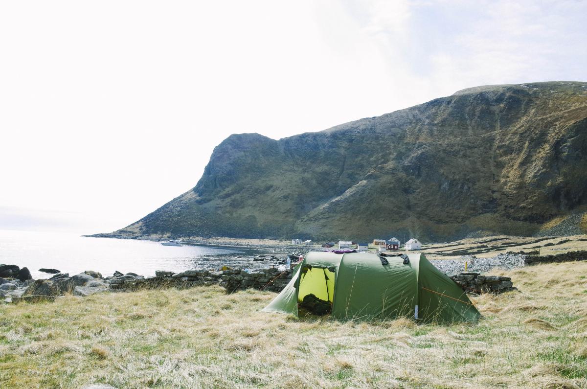 Dette er det tredje året jeg bor i Lofoten, og jeg har vært mye på tur på de lokale toppene her i området. Ett sted jeg riktig nok aldri har vært er Værøy. Jeg og kjæresten bestemte oss på impuls at vi skulle ta en helgetur dit, og fant frem fergetabellen, heiv oss i bilen og dro. Planen var å telte ute på Måstad (http://no.wikipedia.org/wiki/M%C3%A5stad), en fraflyttet bygd på vestenden av Værøy. Fergen la i kai rundt 22, og vi satte i gang å gå med et fantastisk vær og nesten midnattsol. Vi kom frem til Måstad rett rundt midnatt, fikk i oss noe mat og krøp i posen. Våknet etter en god natt søvn i midt ødelagte Børgefjell T4 (og da var det bestemt at jeg kjøper nytt). Teltplassen med Måstad og Måstadhornet i bakgrunnen. Vi bestemte oss for å gå opp på Måstadhornet (439 moh) rett etter frokost. Relativt bratt var det også! Vi nådde toppen! På vei ned igjen, og et oversiktsbilde av Måstad. Lunsj, en god en sådan. Vi bestemte oss for å pakke teltet og rusle tilbake til Nordlandet, i nærheten av den gamle flyplassen, hvor vi skulle slå leir for natten. Etter teltet var slått opp gikk vi opp på Håen, også kalt Natotoppen (438 moh). Her står det en radar i NATO sin regi, samt sendere både til militært og sivilt bruk. Når du går forbi radaren, får du en helt sinnsykt utsikt med et stup 400 meter rett ned i havgapet. Jeg ble helt slått i bakken over hvor vakkert det er her. Den gamle flyplassen på Værøy. Jeg jobber selv i flybransjen, og det er artig å se den en gang så farlige flyplassen. Vi hadde strålende vær hele tiden. Maten ble lagd på stormkjøkken, og viltgryte smakte ekstra godt etter en dag med mye inntrykk. "Midnattsol" en helg tidlig i mai. Dette var en tur jeg kommer til å huske til jeg dør. Lofoten er spesielt, men Værøy er enda mer. Det var veldig vilt der ute, og følte det var mye mer "arktisk" en resten av Lofoten. Må nok innrømme at jeg synes Lofoten er mer vakker, mens Værøy er rett å slett bare råtøft. Anbefaler alle å ta turen dit!