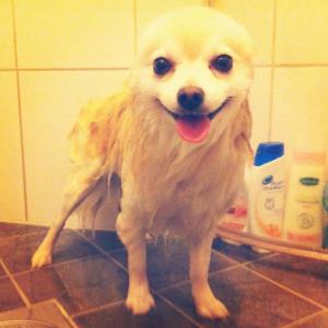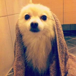 Jeg har en liten røver som klarer seg overraskende godt på tur. Kleinspitz, 8 år. Litt mindre volum etter en dusj.