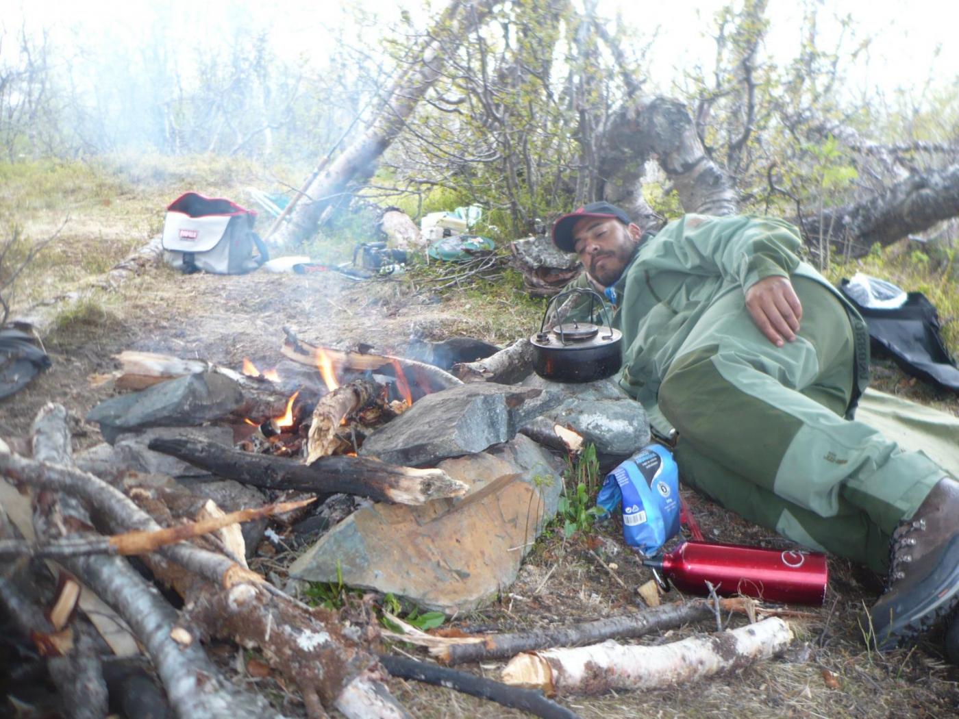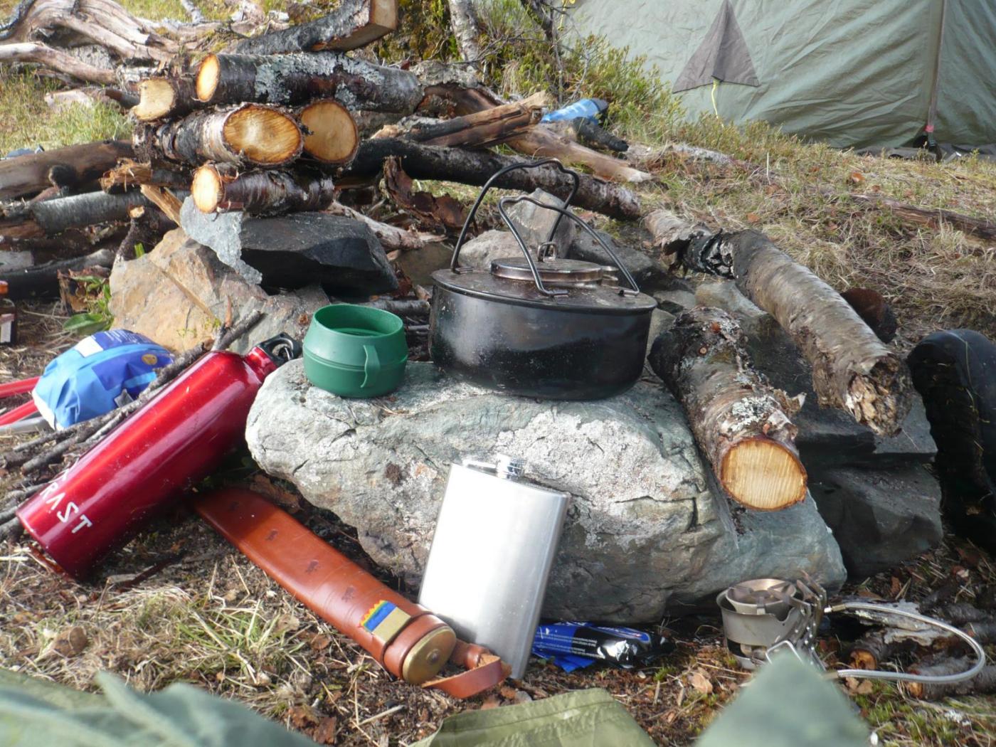 Vi var grise heldige med tanke på at der ikke var noen andre de dagen vi var for som sagt bar store deler av området preg av folk, dessverre i den negative retningen...få ting provoserer meg mer enn å finne søplet til folk slengt omkring i naturen Vi snakket litt når vi var der å dra innom noen av småvanna som ligger i området, men det ble nedprioritert til fordel for en meget avslappende tur. Det ble mange timer foran bålet med kaldt øl, cognac, lytte til et utrolig dyre liv hvor rype-steggene kjefter på hverandre, elgokser som grynter, og mange gode samtaler med min faste kompanjong (som jeg møter engang i året, vokst opp ilag men bor nå med 60mil avstand)