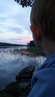 Nå er hengekøyesoving testet ut på husets femåring også, og han var riktig så fornøyd. Han likte veldig godt følelsen av å være helt omsluttet av sovepose, hengekøye og underblanket (vi har DD Hammocks sin mens vi venter på de andre). Det ble som et lite rede, og jeg kunne vugge ham i søvn. Han var også veldig fornøyd med å kunne sove under åpen himmel uten å få maur på soveposen sin... Jeg klarte også å henge oss så tett at jeg kunne stikke hånda ut og over til ham for å sjekke om han var varm nok i løpet av natta. Med ullundertøy og sovepose, ble han så varm at jeg måtte ta av ham lua. Underblaket-greiene fungerte veldig bra. Jeg hadde nok foretrukket Bamse-underlag som var like brede som selve hengekøya, men vi var i alle fall varme og gode begge to. Jeg er fortsatt begeistret over hvor utrolig mye bedre komfort jeg har i hengekøye enn i telt, og føler at dette gjør det langt lettere med overnattingsturer i hverdagene, jeg bruker mye mindre ting på å pakke ned hengekøyene enn teltet. Å sove ute, gå hjem og spise frokost, levere i bhg og komme meg på skolen selv er jo det beste som finnes.