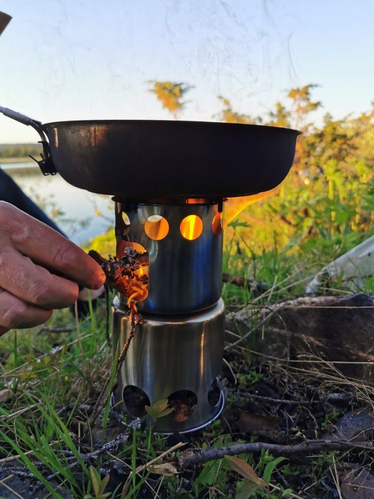 Kjøpte denne, fungerte fint når jeg fikk satt de tre delene riktig sammen. Gjelder å få satt den nederste indre delen inni toppdelen, slik at brenneren henger skikkelig sammen. Artig å se "forgassingseffekten" fungere👍 Brant også fint etter at matlagingen var over, med vedpinner stikkende opp... Brenner: https://a.aliexpress.com/_dZchzVk Brenneren passer såvidt inni denne 1,1 liter titankjelen når jeg snudde kjelelokket: https://a.aliexpress.com/_dWe2hXC Et skikkelig lettvekstsett med brenner på 200 gram og kjele på 163 gram. Liker håndtak og hank på kjelen. Brenner og kjele kom rett i postkassa uten moms, ca 135,- for brenneren og 320, - for kjelen med frakt. En som har laget en YouTube film om brenneren her: