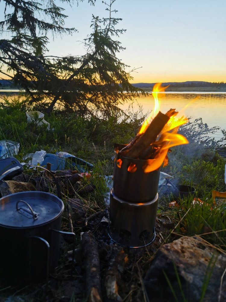 Kjøpt kvistbrennere på Aliexpress. Etter mye testing har jeg erfart at det enkleste er det beste. Kvist er det uansett nok av. Funker fint til både kosebrenning og koking. Lett i vekt, renslig og kompakt med sammenleggbare brennere i titan. Sot brenner av. Ca 300 kroner, både den store og den lille funker fint og er lette i vekt, 200 gram og 300 gram. Krysset i toppen bruker jeg ikke, og mater vedpinner ovenfra. Til kosebrenning kan en bruke vedpinner med god lengde, blir fin høyde på flammene. https://a.aliexpress.com/_m0YYPf3