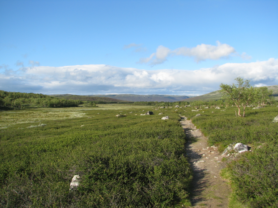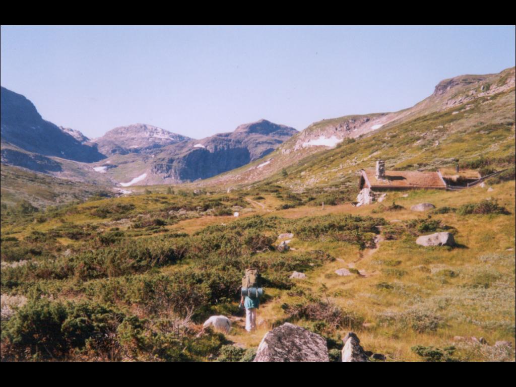 Starter man fra Finse så er det iallefall en veldig fin tur derifra, over Hallingskarvet, og videre til Ålsfjella. Gikk den biten i 2005. Fra Ål kan du enten velge om du vil gå videre til Golsfjellet, over til Vassfaret og videre ned til Hønefoss. Eller gå på andre siden av Hallingdal fra Ål ved å gå videre til Norefjell, ned til Krødsherad og derifra til Hønefoss. Jeg ville nok valgt Norefjell siden av Hallingdal. Er du heldig kan du besøke Høgevarde på en skyfri dag og få norges nest beste utsikt etter Gaustatoppen. Bildet er iallefall tatt ved Hæe i Ålsfjella - på vei mot Skarvheimen. Ser altså slik ut der;