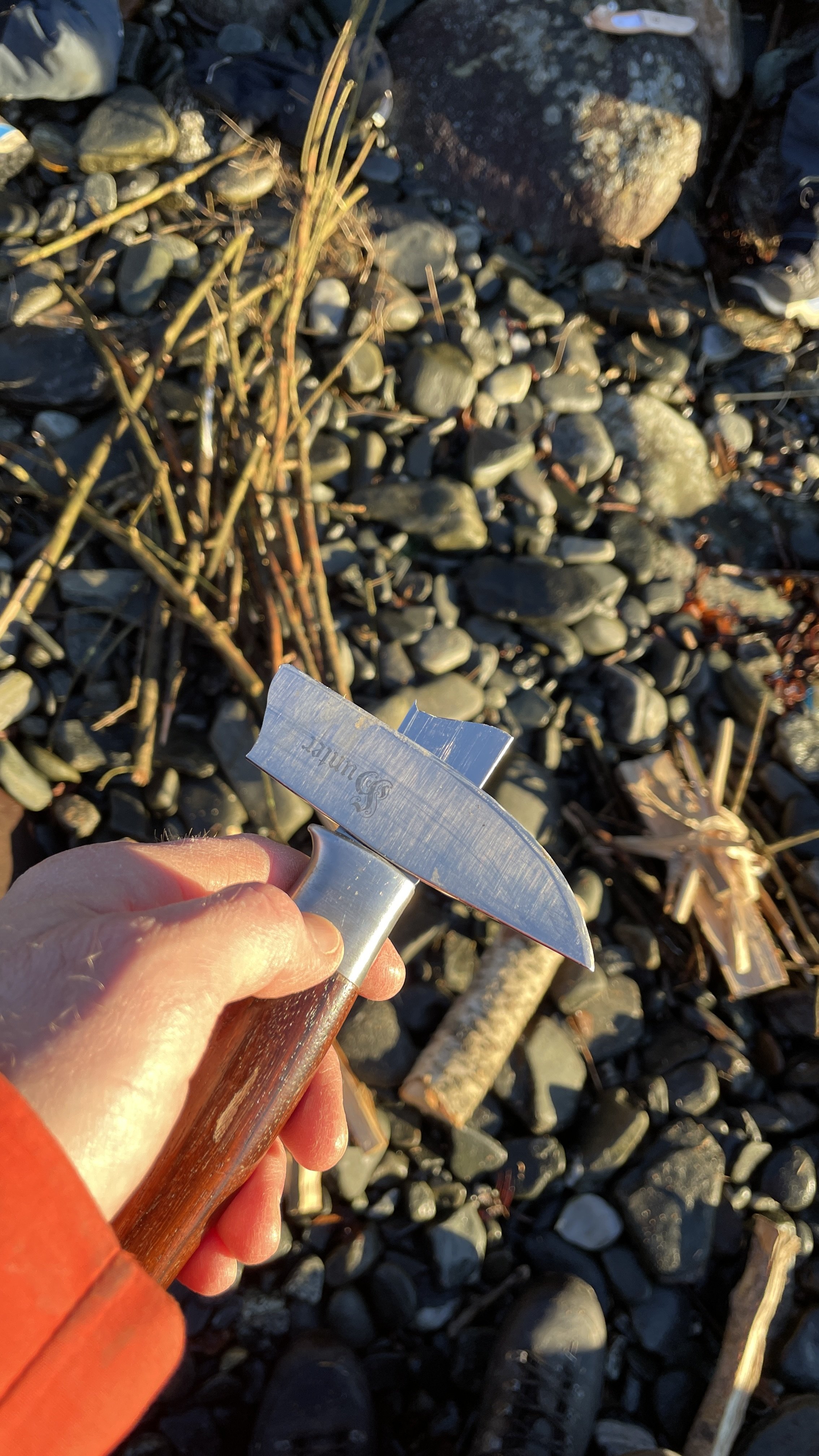 En rimelig «folding»-variant fra eBay. Stor, litt tung. Men ganske gøy sak. (Kunne lukket «døra» for å sentrere varmen bedre , men kjekt å bare stikke inn ny kvist.)