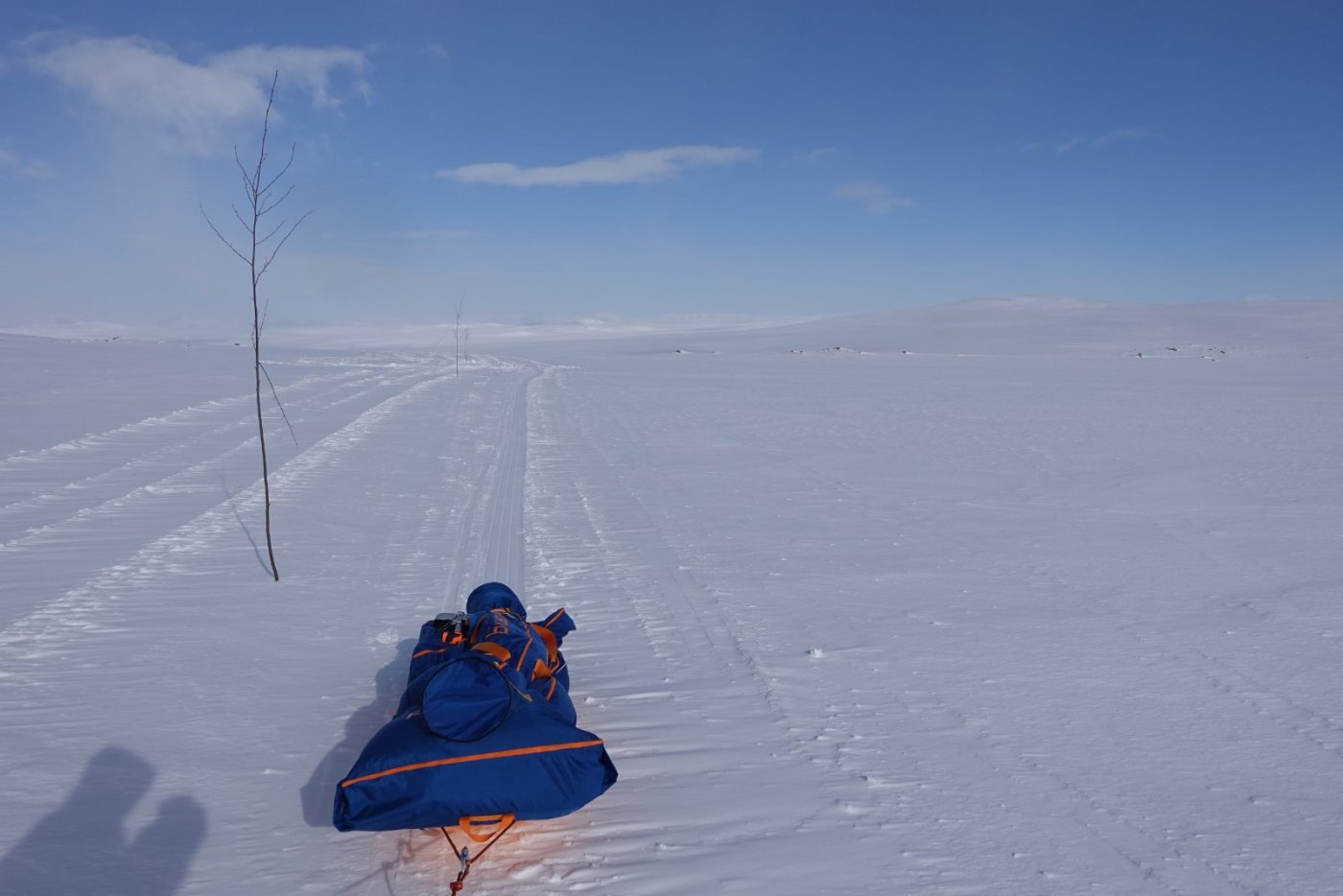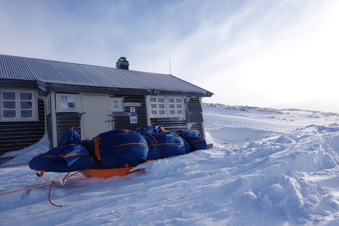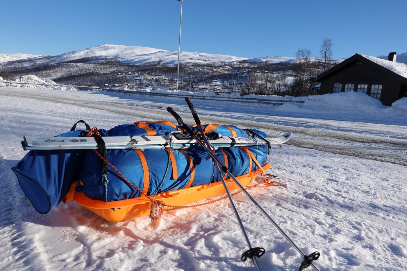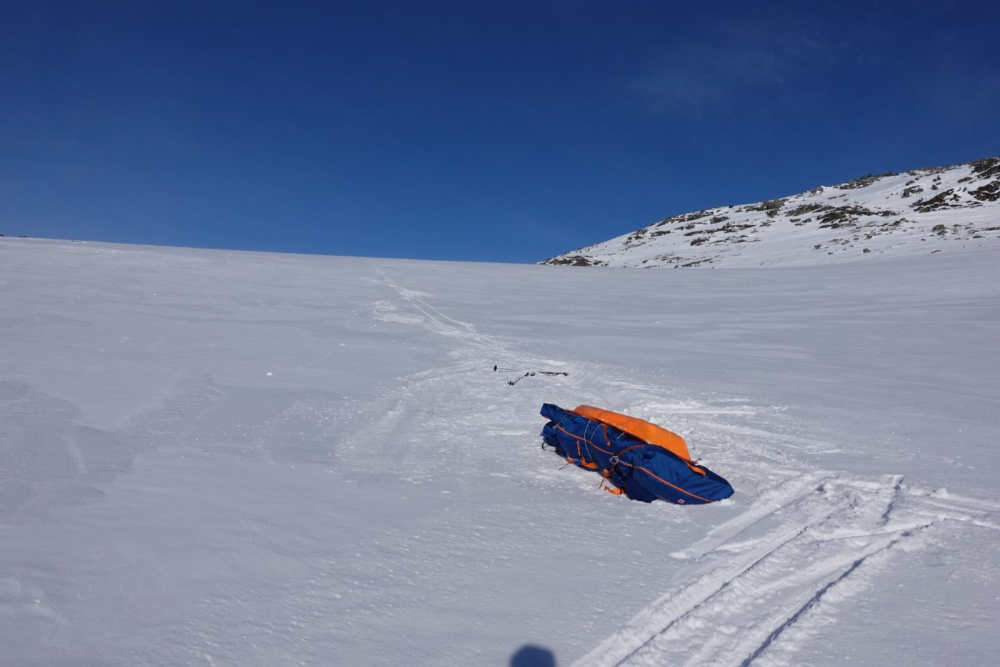 Tyinkrysset til Haukeliseter med pulk, mars 2023