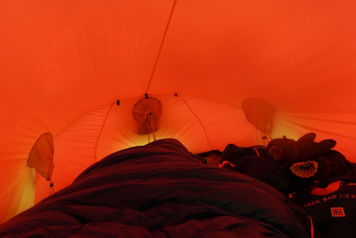 Meinar du då å ha ein søppelsekk/fukttett pose inne i sjølve soveposen? Har lest at Ousland og Horn sov i det på vinterturane til nordpolen, men det fristar lite å sove slik når det strengt tatt ikkje er nødvendig… Då har eg meir tru på å ha ein lakenpose på utsida for å flytte nullpunktet utover slik at det blir rim i den istadenfor i posen.. Det var ikkje noko vind i teltet nei, vi brukte vindfolien som varmereflektor for å effektivisere kokinga… Godt poeng at det kanskje dannar seg meir CO, har ikkje tenkt på det! Vi hadde likevel godt med lufting og var veldig obs på det. Har alltid fyrt slik og føler det går bra, ikkje merka noko symptom på CO forgifting. Var tørr på beina heile turen, holdt dei også varme. Kjøpte skiskoa litt store og brukte ein tynn ullsokk innerst og ein tjukk raggsokk ytterst. Det fungerte bra. Fraus ikkje ein einaste gong. Ang liggeunderlag brukte vi ein jervenduk i botnen som vi la utover innerteltet. Hadde også eit klassisk bamseunderlag og eit oppblåsbart Mountain Equipment Aerostat Ultra 7cm med dun, prima liggeunderlag, det fungerte veldig bra!- 8 svar