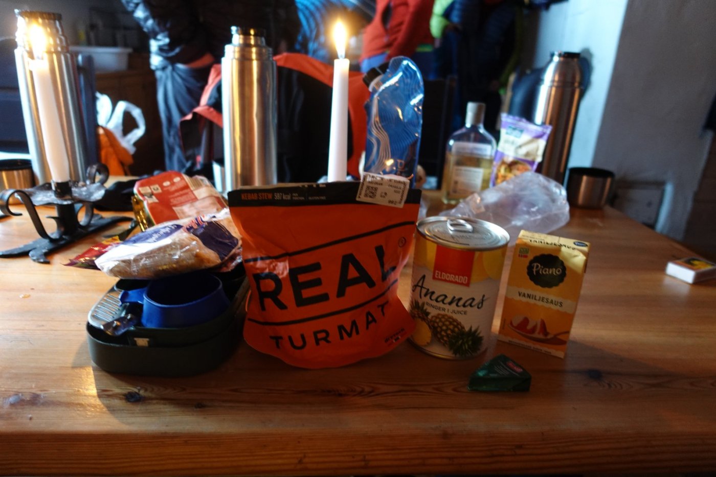 Hei. Jeg har tenkt meg på tur til tafjordfjellet neste uke alene. Tenkte hovedsaklig å sove i telt, men ha dnt hyttene som nødløsning dersom det skjærer seg. Jeg har aldri vert så lenge på tur før(verken alene eller sammen med andre) og lurer derfor på dette med mat for en uke i vinterfjellet på ski. Til frokost tenkte jeg granola blanding som jeg har varmt vann og honning i, evt rester fra middagen kvelden før. Middag prøver jeg å variere litt fra dag til dag. Er møkk lei real turmat, får dårlig mage av det så prøver å styre unna. Tenkte noe slikt: Dag 1: bacon (har med 500g bit) m knekkebrød m smør og en halv pose potetmos dag 2: Betasuppe med ferdigsteikt grytekjøt av hjort som eg har med vakumpakka.(blir dette tungvint? Er jo kjølig i sekken no vinterstid så tenker kjøtet held seg bra. Nokon som har erfaringar med dette el.?) dag 3: hurtigrisgraut med honning, rosiner smør og kanel. (Tenkte ta med en flaske honning istadenfor sukker. Honning er jo like godt! Tenker ha det på frukostblandinga også. Og kan maule det som evt.nødmat. Erfaringar/tips?) dag4: bacon og potetmos. Evt betasuppe i tillegg. Dag 5:betasuppe m bacon oppi. Dag 6: hurtigrisgraut. Dag 7: berre et det som er igjen! Legger ved et bilde av det eg har handla inn til no. Til lunsj blir det vel mest nøtter frå first price(masse fett og 512kcal/100g), mårsnabbar(salt kjøt), eldorado kornbar(100kcal per bar), 1 stor sjokolade til dessert etter middag i teltet, bixit kjeks. Tenker kjøpe tørrmelk i tillegg for å ha i frokostblanding og grøtris, men er det nødvendig? Smaker grauten høveleg greit utan tørrmelk? Kva synest de meir erfarne fjellfolk om matmengda? Har ikkje tenkt å gå så langt og hardt eg klarer, men ha fokus på å kose meg og prøve å bli meir vandt til å vere lenge på tur åleine. Er godt turvandt frå før, men føler meg klar for å prøve meg åleine ei vekes tid. Takkar for alle tips og innspel