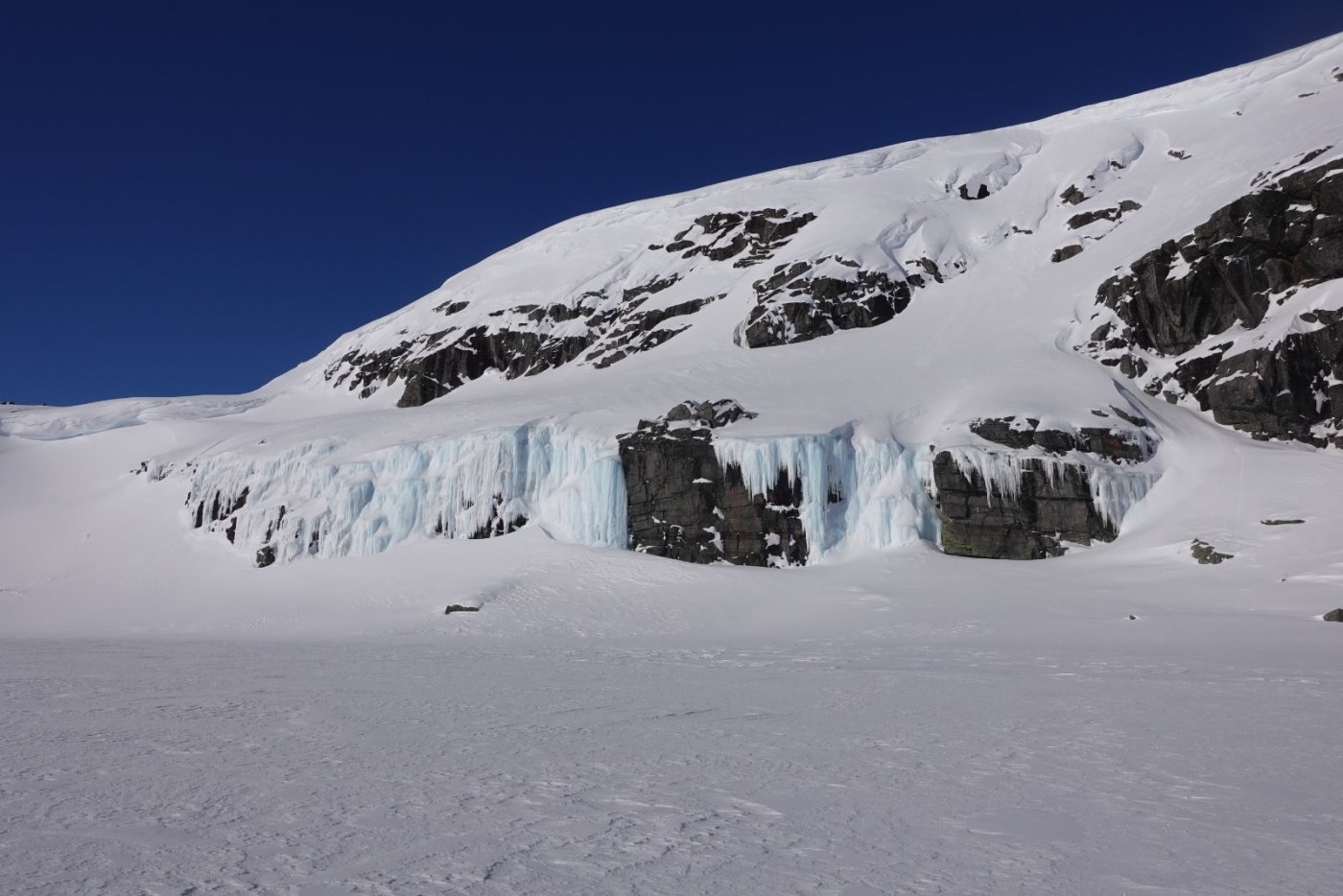 Hei. No i januar er det truleg ikkje kvista. Gjekk akkurat frå Finse til Rjukan, og det var ikkje kvista ein meter. Vatna er stort sett trygge, spesielt no i januar. Sjekk iskart.no. Ville brukt fjellski med stålkant. Er alltid lurt å ha med spade og fjellduk som eit minimum i høgfjellet vinterstid. Veiret kan snu utruleg fort. Også ein lett brennar til å kunne smelte/koke vatn kan vere fint å ha med seg. Dersom du ikkje har så mykje erfaring med skigåing på fjellet ville eg venta til våren, då er det lengre dagar og faren for å mørkne ute er mindre. Veiret er også meir stabilt og varmt og alt er generelt meir trivelig på denne tida. Det er likevel heilt magisk å gå i vinterfjellet når det er fint veir, men ein må ha utstyret, erfaringar og fysiske forutsetningar for å klare turen. God tur! -