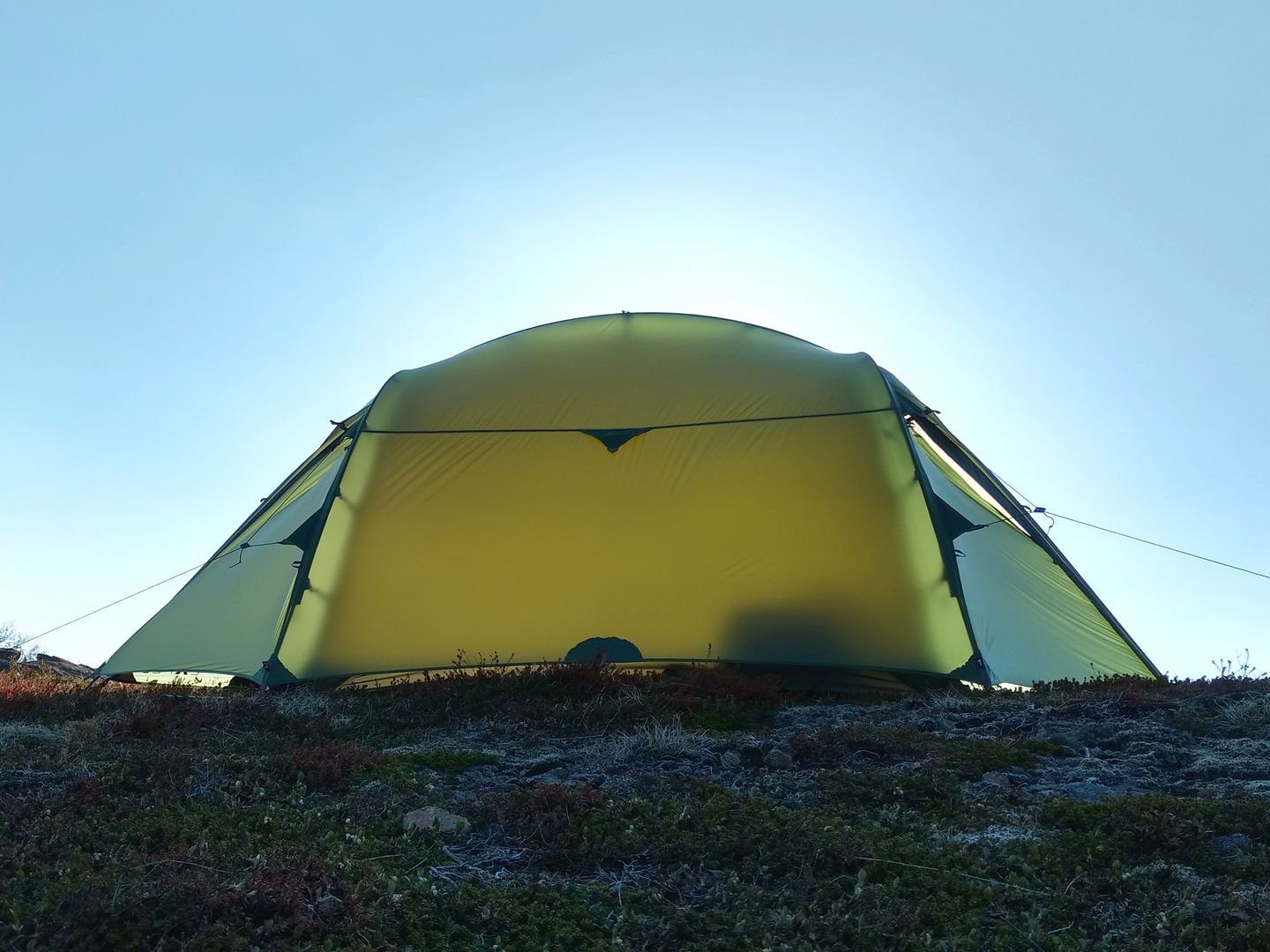 14. Helt enig Og til det formålet er jeg enig i at det holder fint å sette det opp på et gulv. Tviler altså ikke på konklusjonen om at Allak 3-teltet ikke passet. Derimot er jeg nok mer i tvil om at målinger man gjør på et telt som er satt opp på den måten gir godt grunnlag for å konkludere med at hele bransjen har en tendens til å bløffe i desimeter-klassen når de oppgir spesifikasjoner? I mitt hode er såpass hyppig og stor divergens en indikasjon på at det er forskjellige målemetoder som er hovedårsaken, ikke bløffing. Og det er jo i så fall positivt (og forhåpentligvis ikke naivt) Selv liker jeg å få mitt Orion passelig utspent, selv om det kan stå av seg selv (her ser man konturene av det gule innerteltet også): Takk Da er det i hvert fall bekreftet at teltet jeg har er en 2017-modell: