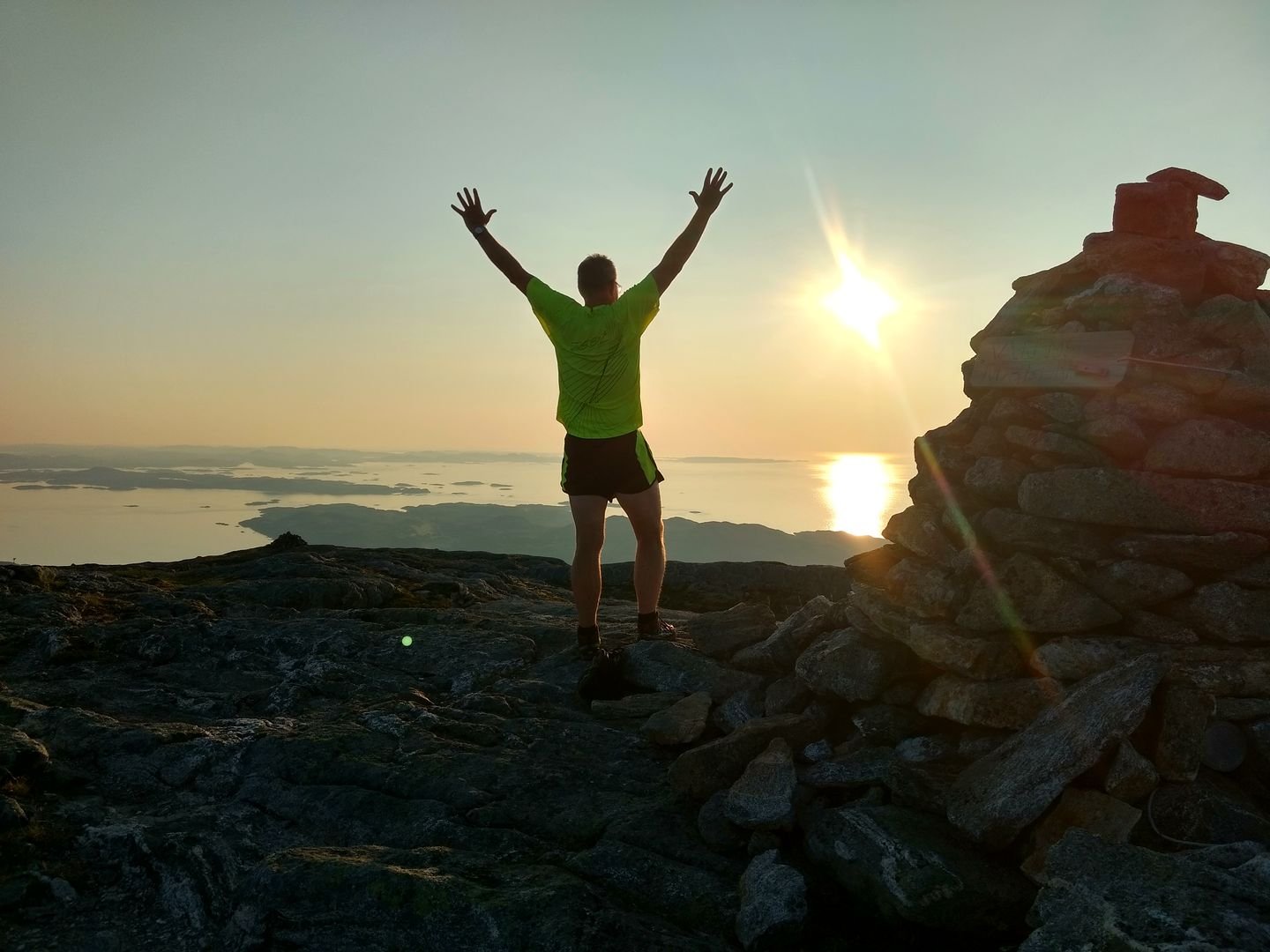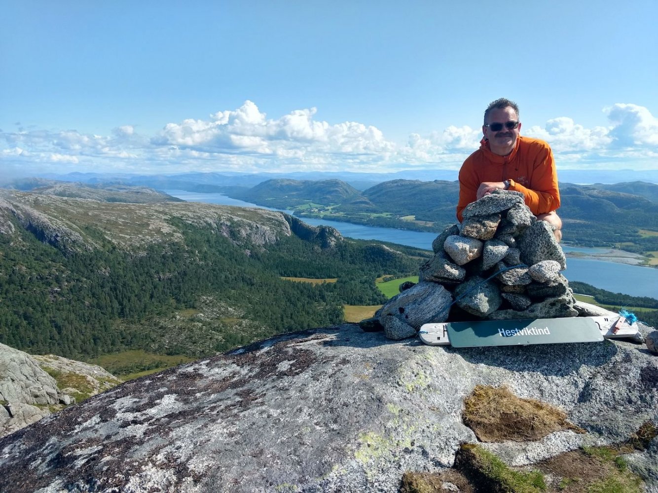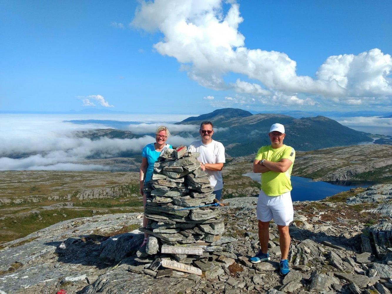 Etter en del om og men, ble det endelig en Fjelltrimtur i kveld - til Skiftingspynten (376 moh). Husket stemplingskortet, til og med Brukte 46 minutter på de 3,2 km opp fra havnivå, og som 50-åring med tresifret vekt er jeg fornøyd med det. I bakgrunnen, bak Leka, kunne jeg se at solen skinte på @Kjell Iver sin vakre Torghatt, mens skyene lå tungt over meg. En fin tur var det uansett, den sjuende Fjelltrim i år
