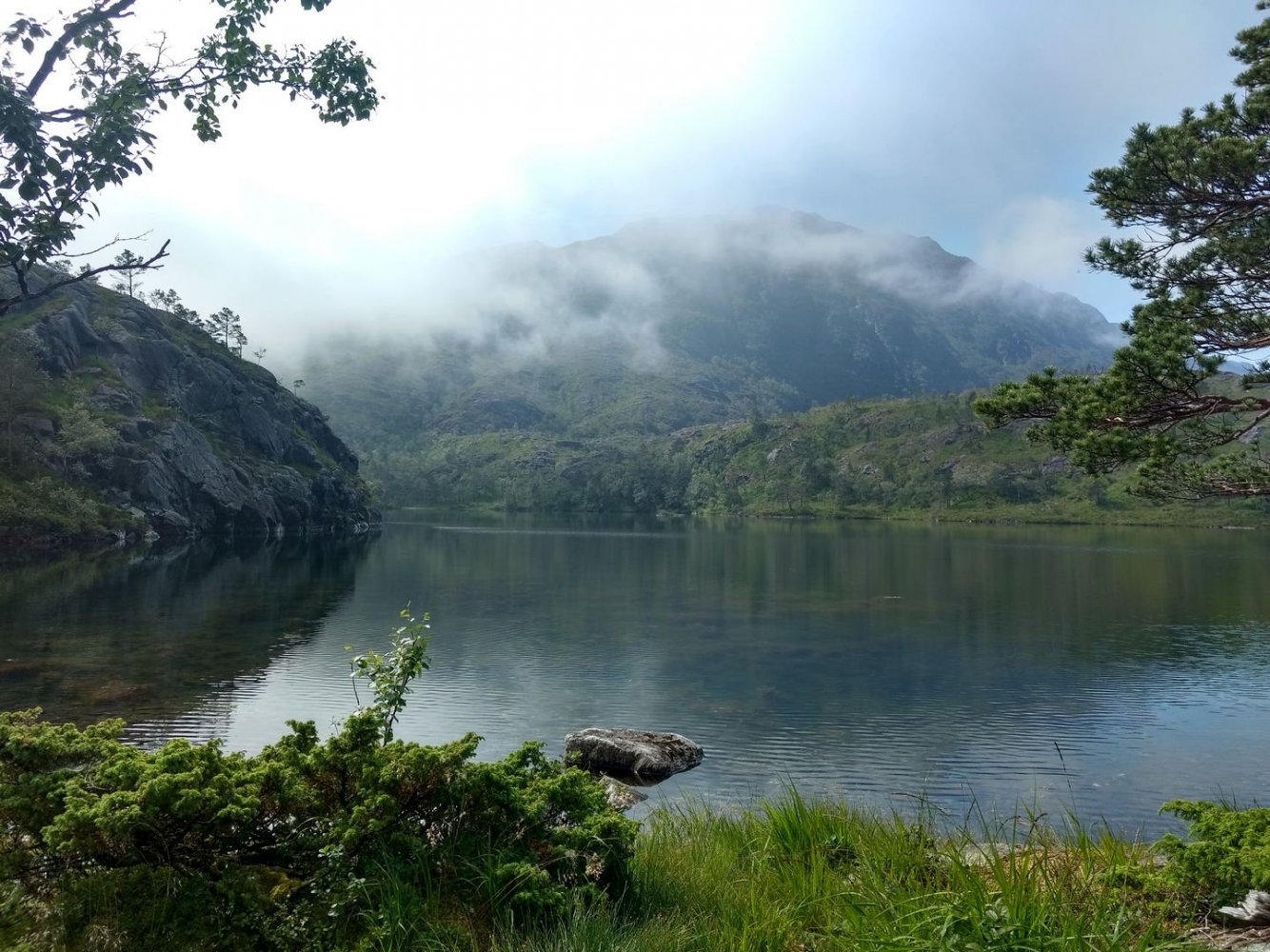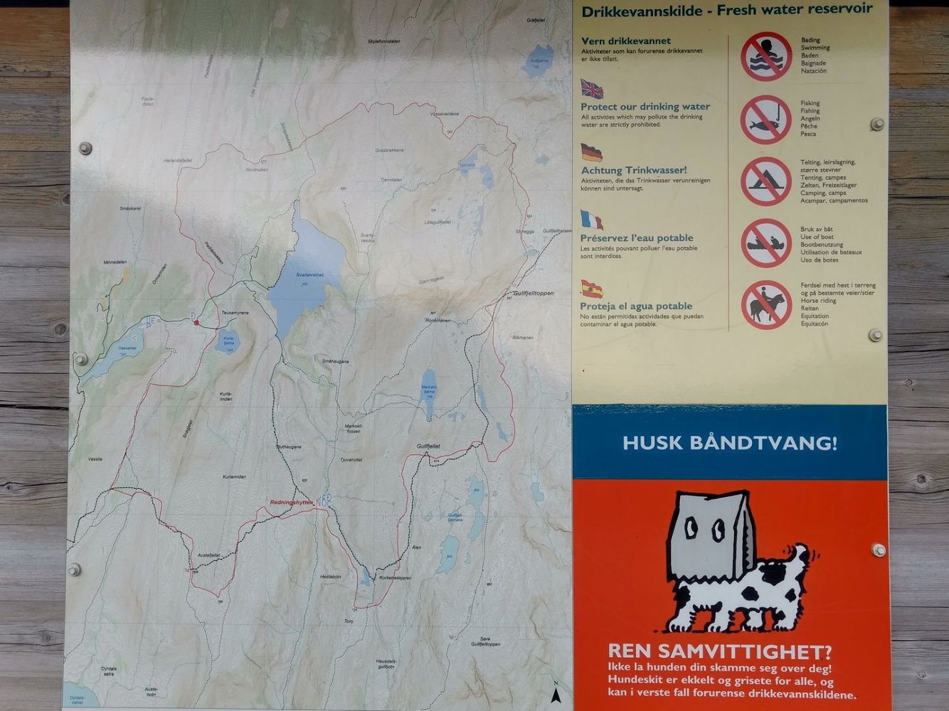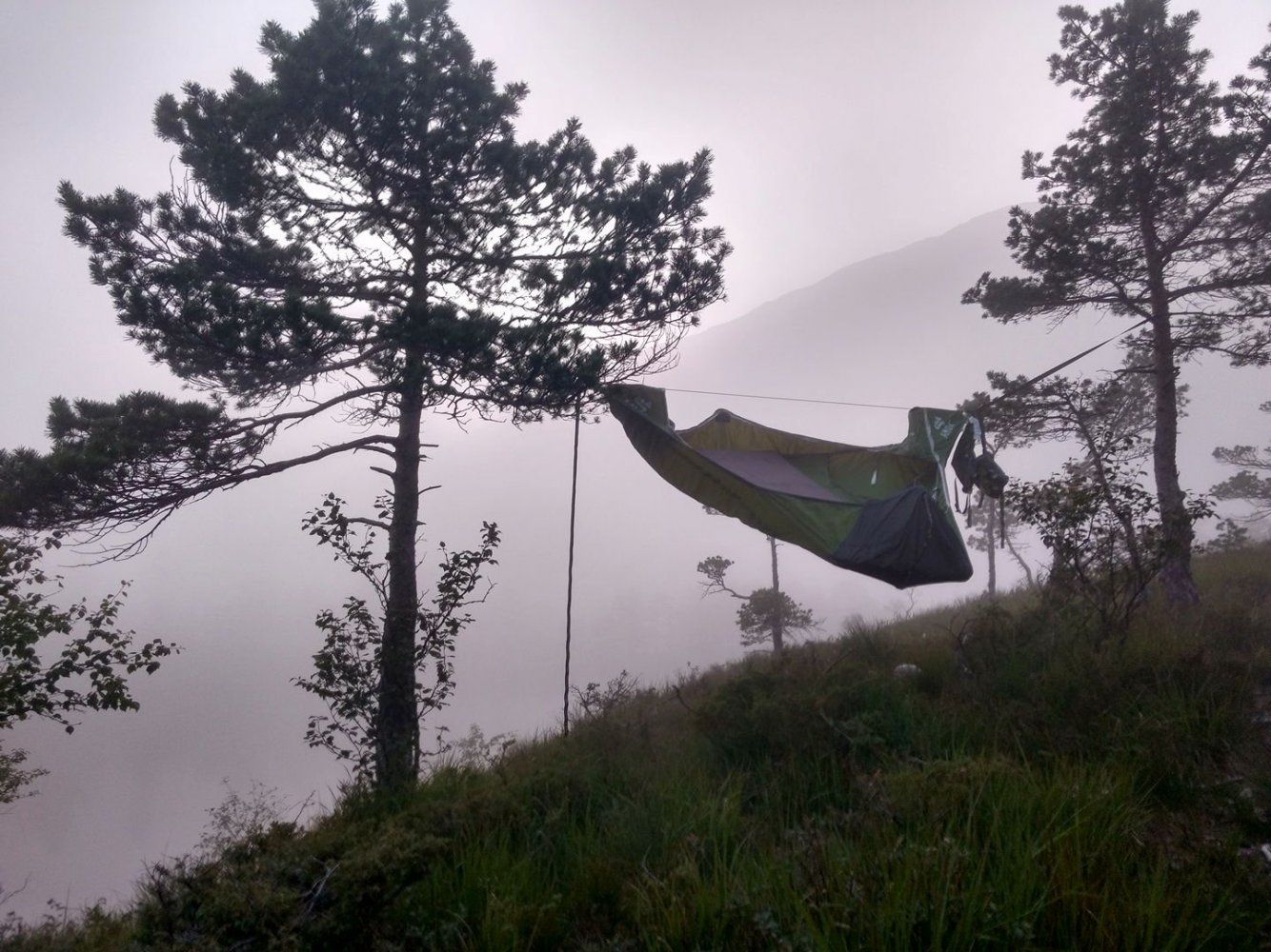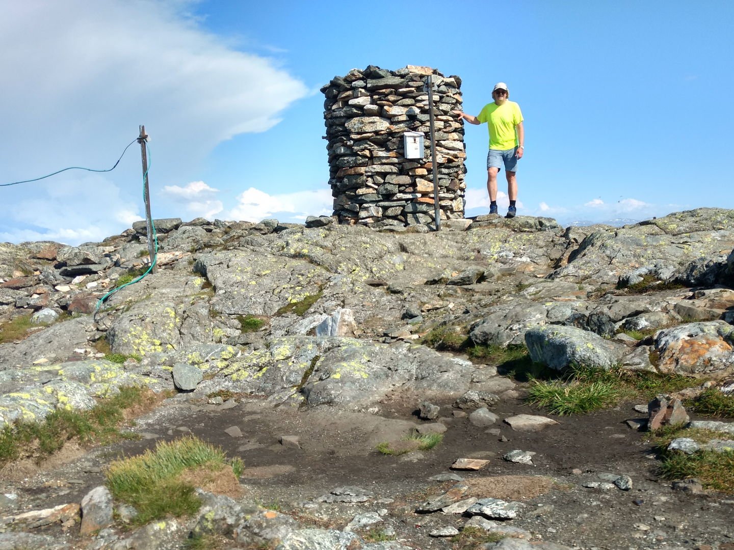 Torsdag avspaserte jeg de siste timene, og fikk aksept for å avspasere hele fredagen Jeg hadde ambisjon om å gjennomføre en litt redusert versjon av en tur jeg lenge hadde hatt lyst til å gå; fra Osøyro til Bergen via kommunetoppene Sveningen og Gullfjelltoppen. Planen var å forskyve starten fra Osøyro til Lønningdal, og gå derfra. Den ble faktisk ennå mer redusert, jeg kuttet litt på slutten også (kommer tilbake til dét), så GPS-sporingen (blå strek) over de vel 37 km ser slik ut: Ankom bussholdeplassen Lønningdal litt etter kl 16:00, innerst i en vik i Samnangerfjorden. I sekken lå det hengekøye, null telt - så her ble "walk high, sleep low" Veien gikk innover og oppover i et frodig landskap opp til en parkeringsplass ved Midtsæter, deretter traktorvei et lite stykke og så en sti med klopper opp til tregrensen: Bortimot kl 18:00 var jeg på første fjelltopp, og møtte en av få andre personer på min vei - en kort nikk og "Hei!", så dro han nedover og jeg videre oppover. Langt der bak i horisonten helt til venstre er Lyderhorn, nest "hump" er Løvstakken, i den lange dumpa befinner Bergen seg, før Ulriksmasten reiser seg nær midten av bildet: Et tilbakeblikk mot starten i Lønningdal fra Rindafjellet - en flott utsikt : Siste del av ryggen, stien sniker seg under toppen Søtefjellet og videre bortover mot kveldens mål til høyre. Bakenfor i midten ruver Søre Gullfjellstoppen/Sydpolen - dit skal jeg etter en natts søvn : Kommunetopp! Sveningen er 842 moh, og høyest i Os kommune. Ser ryggen jeg har gått fra venstre, bak postkassen og til høyre - flott tur! Men fyttirakkern det var tungt å slite med seg sekken opp de siste meterne, jeg tror jeg begynner å merke alderen (eller, det kan være en kjapp unnskyldning når man ikke har gått så mye i det siste?) : Fra Sveningen gikk turen ned til Litlebrekkvatnet, der det ble mat og hengekøyeoppsett. Etter å ha teltet der før en gang, hadde jeg sett for meg noen trær på en fin odde, men de sto akkurat 40-50 cm for langt fra hverandre. Fant et par andre bare 30-40m unna, fortsatt bare noen få meter fra vannkanten. Tåken kom som sluppet ut av en sekk bare minutter etter at jeg hadde fått alt på plass og skulle til å legge meg - tenkte ikke mer over det. Midt på natten våknet jeg av regn, uten at det regnet - skodda var så tykk at den mettet myggnettingen med vann, som slapp det ned på meg og soveposen. Ja, ja - nå vet jeg at dunsoveposen tåler mer fukt enn jeg fryktet Tåka lå der hele neste formiddag, og jeg kom ikke av gårde før rundt 12:30: Turen opp til Sydpolen var blytung, jeg brukte bortimot dobbel tid (2:15) ift når jeg har gått med friske bein og minimal pakking. Deilig å komme til topps, og få flott utsikt - blant annet over ryggen jeg hadde gått ila gårdagen. Ny kommunetopp! Gikk ryggen øst for Gullfjelltjørnane og dreide deretter inn på "standardstien", der jeg parkerte ryggsekken ved en varde og tok hoftesekken i avstikkeren opp til Gullfjelltoppen (988 moh). Møtte ikke en sjel på turen eller på toppen. Flott utsikt! Fulgte "standardstien" nedover, og tok en stopp ved vannet nedenfor Toro. Det hadde selvsagt vært passende med mat fra Toro der, men det ble en Summit to eat Beef stew. Med det kaloriunderskuddet jeg da hadde, smakte det fortreffelig Avsluttet med å forflytte 0,5 kg med IPA fra ryggsekk til innvortes last...: Fortsatte videre på stien, med en stopp på sanitærfasilitetene ved Redningshytten. Kom ned til sivilisasjonen, og mått knipse et bilde av grensene for nedbørsfeltet jeg gikk ut av: Fortsatte nedover Gullfjellveien til jeg ble lei, og begge føttene begynte å verke (pussig nok i lilletærne) - tok en avstikker opp fra veien mot Ramslandhovden, der jeg satte opp hengekøyen og forsøkte å holde meg våken for 23-nyhetene på radio. Det gikk så vidt, deretter knipset jeg et bilde og sov som en stein : På lørdags morgen var det på ny tåke. Mye fukt overalt - dog ikke så mye som ved Vetlebrekkvatnet, så ingen drypping fra oven, heldigvis. Planen var å komme seg ned til enten Haukeland eller Lone (dersom jeg trengte mer forsyninger), og så gå over Ulriken/Byfjellene til Bergen. Bel lei av asfaltgåingen, spesielt siden føttene fortsatt ikke var gode. Burde sikkert ha fortsatt fra Redningshytten til Livarden, og gått ned derfra til Unneland for å unngå mye asfalt - men, men. Uansett, da jeg nærmet meg Hardangerveien, lå skyene fortsatt lave rundt Byfjellene og lilletærne ga fortsatt smertelig uttrykk for mishag med siste dagers eventyr. Jeg måtte ta et valg, og det ble avlyst tur til tåkeheimen. Det ble istedet buss og bybane hjemover, gitt - kom hjem i lunstider: Til tross for en planlagt reduksjon i starten og en uplanlagt reduksjon i slutten, ble det en skikkelig flott tur! Og jeg fikk god uttelling på 2019-utfordringen mine; uteovernattinger økte fra 8 til 10, og kommunetopper doblet fra 2 til 4 Og når vi nå har passert midtveis av 2019, synes jeg at andreposten i denne tråden viser at jeg foreløpig er i rute