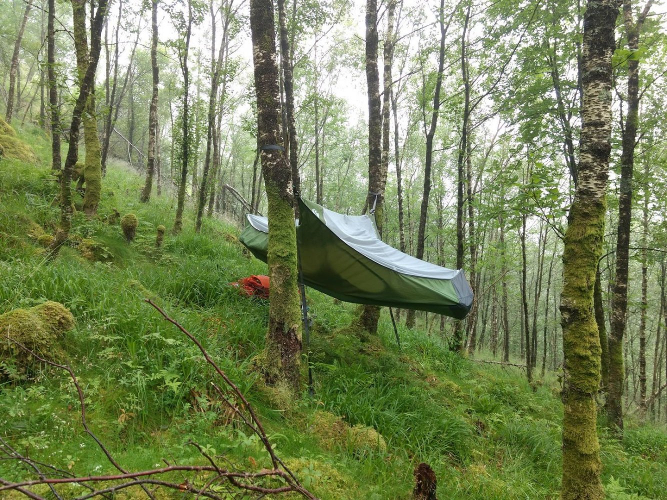 Sjekket lengdeforskjellen på stengene nettopp. 2019-mod med en butt ende, mens 2017 mod har spiss i begge ender - og her er endene jamstilt utenfor bildet til høyre: Minimal forskjell, altså. Jeg tipper at ytterteltet er sydd så å si uendret, men at innerteltet er sydd 10 cm lengre, og så lar man ytterteltet bli 10 cm ekstra utspent nederst for å få lengden inne. Med det mister man litt høyde, men akkurat det har man jo mye av i utgangspunktet (relativt sett, mot andre telt). Og det blir enda viktigere å påse ordentlig utspenning vha plugger. Tror du har rett mhp praktisk liggelengde et stykke over bakken, ja. Akkurat nå ser det ut som om jeg ikke kommer til å bytte til 2019-mod uansett, siden det er absolutt null interesse for 2017-modellen som jeg annonserte i "Kjøp, salg og bytte"-kategorien (Link). Lar den ligge over helgen, og er interessen fortsatt laber, returnerer jeg nykomlingen og beholder godegamle - fortsatt godt fornøyd. Samtlige overnattinger der har vært komfortable, og jeg ser ingen grunn til at ikke det skal kunne fortsette (Kan jo ikke beholde begge to - da risikerer jeg å havne i krangling over n+1-formelen betydning når man bringer inn ulike modellår på like telt, og slikt kan vi ikke ha noe av...)