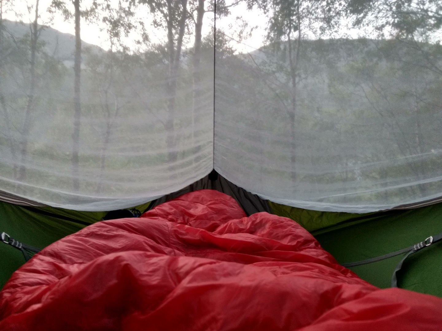 Mulig at 13cm ligger innenfor forventet variasjon i produksjonen, men jeg synes det høres mye ut. Kanskje kan slike variasjoner være en årsak til at meningene om Orion spriker litt? Med våt duk er jeg ganske sikker på at jeg kan dra duken på mitt Orion UL ned til 5 cm i hjørnene, med tørr duk blir det nok litt høyere. Her er et annet utsnitt av det samme bildet som jeg la inn noen poster opp, da var duken helt tørr - og jeg tror ikke jeg strammet mer enn vanlig: Så lenge man får vinden fra andre siden, og ikke står i snøføyk, er det der helt akseptabel åpning for meg. Men synes selvsagt at det er helt greit at andre vurderer det annerledes.- 19 svar