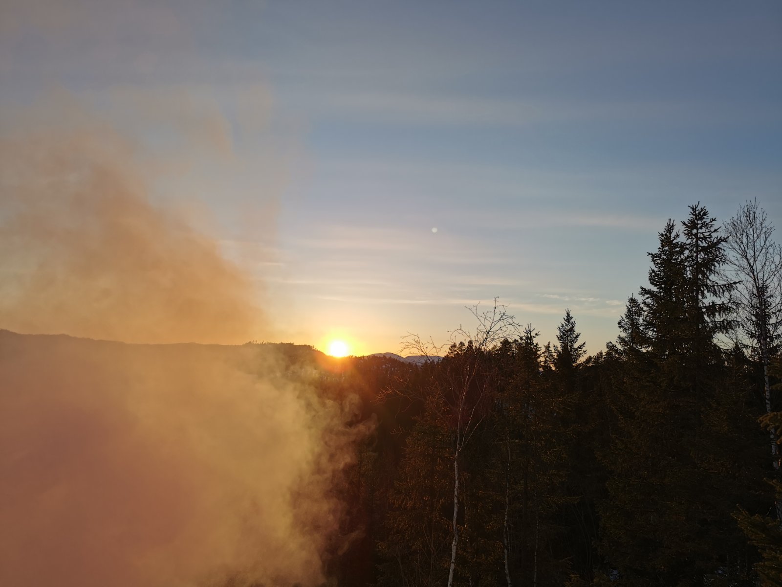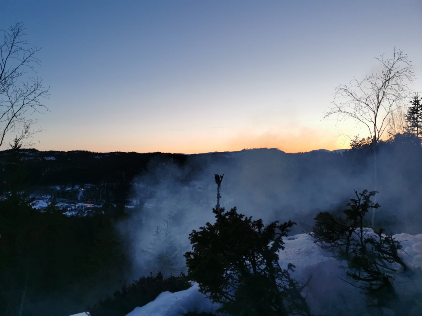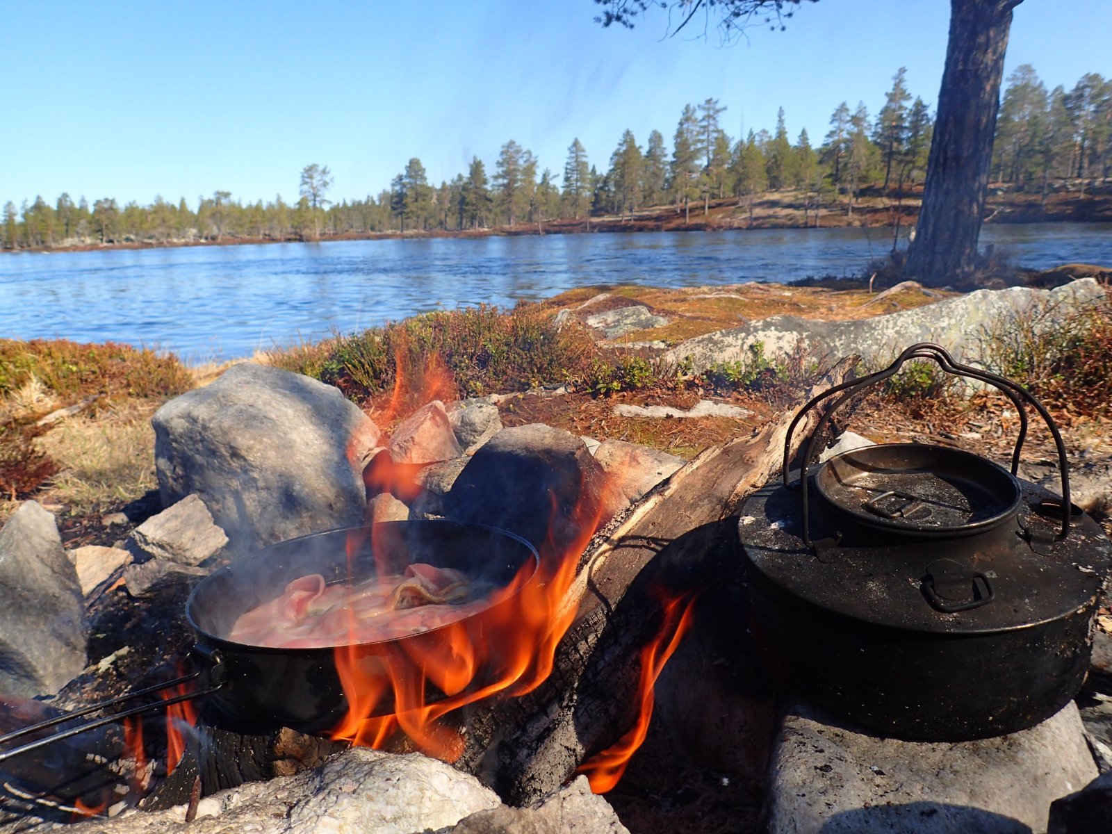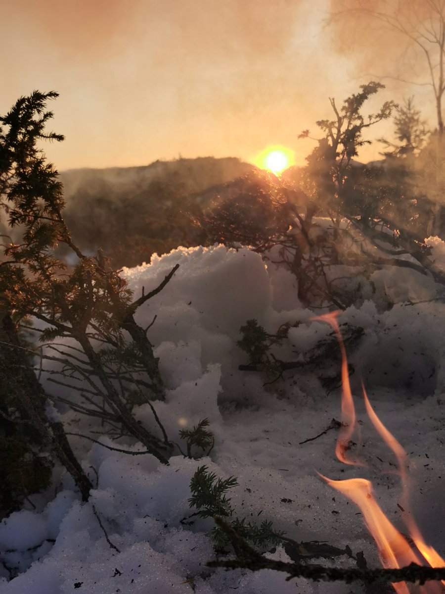 Man kan drømme om Norge på langs og Canada på tvers, men i noen perioder av livet må man bare akseptere at noen timer ved bålet i marka bak huset er det man får. Denne fredagskvelden trosser jeg dørstokkmila etter at avkommet har sovnet, og sykler et stykke opp i bakkene mot markaområdene vi har bak huset. Godværet og den første våryrheten har meldt sin ankomst. Jeg har tenkt meg opp til den faste bålplassen min, som ligger høyt opp og fint til for solnedgangen. Jeg parkerer sykkelen og smetter på trugene, og legger i vei inn i skogen. Det er et kappløp mellom meg og de siste solstrålene. Jeg kjenner fort at jeg rett og slett ikke orker hele turen opp til plassen min i dag. Jeg er helt kake. Jeg finner i stedet en nokså fin kolle med litt utsyn, langt nok bort fra vei og sti til at jeg føler meg helt alene. Ikke det at det kommer folk innover her i kveld uansett, men allikevel. Jeg finner nok brukbar ved til bålet, fyrer opp, finner godstillingen på reinskinnet akkurat i tid til å få med meg solnedgangen. Jeg ser at bålet blir bra. Alle vet at det er forskjell på et godt og et dårlig bål. For en gangs skyld går røyken rett vekk fra meg. Det er fredag, så jeg unner meg en øl. Roen kommer sigende, med tyngde. Det er alt for lenge siden sist. I det skumringen tar over for dagslyset begynner en kattugle å tute et stykke lenger inn i marka, men ikke lenger unna enn at det føles nært. Kattuglas spøkelsesaktige lyd minner meg om ulvehyl. Ulveuglas spill gjør at jeg et øyeblikk føler meg hensatt til dypere ødemarker. Håmmårbekken nede i dalen under meg høres unektelig ut som Thelon river. Her hvor jeg sitter har ingen sittet før, det er jeg sikker på. Denne marka står akkurat nå ingenting tilbake for Nordvestterritoriene. Jeg sender noen snapper til noen jeg vet setter pris på slike snapper, og tar noen bilder, før jeg legger vekk telefonen og suger inn øyeblikket til det fulle. Når ølen er tom blir det et par brødskiver med ost på bålet. Ulven og Thelon bråker ufortrødent videre. Jeg legger meg tilbake på reinskinnet og kikker opp på den kveldsblå himmelen og de karakteristiske pistrete grantoppene man finner her øst for Store Slavesjø. I det mørket begynner å få fullstendig overtaket, og den siste veden er brent opp, slutter ugla å tute, og jeg pakker sammen og trasker ned igjen. Mens jeg triller ned bakkene på sykkelen, tenker jeg hvor heldig vi er som har marka så nært. Den er ikke urørt og utilgjengelig, men den er stor nok og vakker nok på sin måte. Jeg håper det blir mulighet for flere slike kvelder. Og drømmen om Norge på langs og Canada på tvers kommer nok til å leve videre.