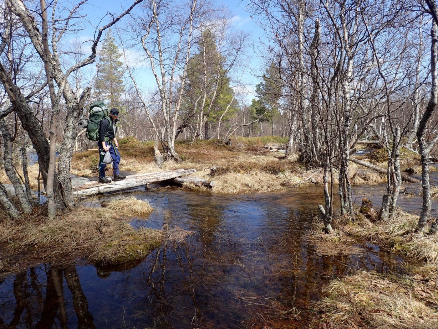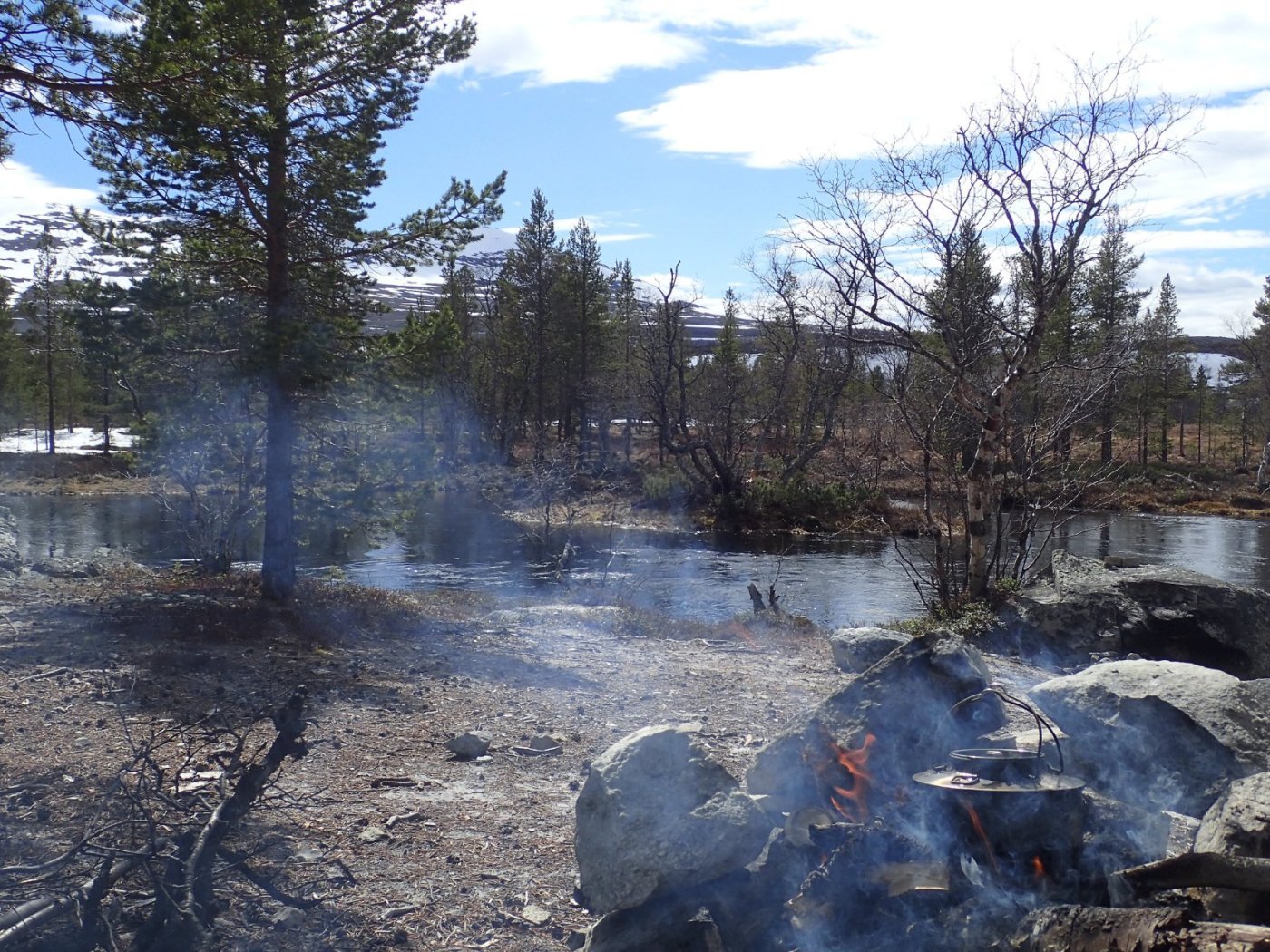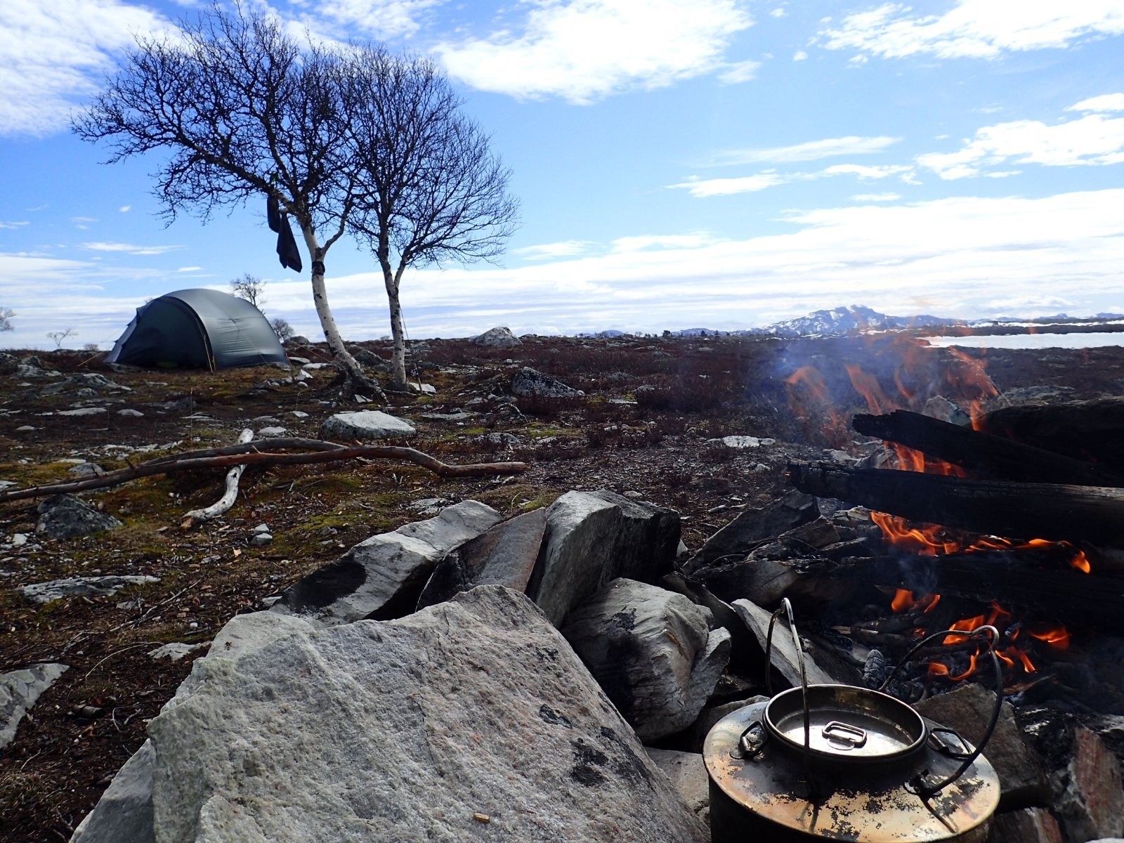 Nå som barmarkssesongen er like rundt hjørnet, passer det kanskje å pirre turlysten litt med en ganske forsinket rapport fra en vårtur i Femundsmarka for straks to år siden. Torsdag før pinsehelga 2020, like etter at arbeidsdagen er over, setter to trøtte, men turkåte småbarnsfedre seg i bilen. Skuldre og blodtrykk senkes umiddelbart idet kursen settes sørøstover. Det er dette vi har sett fram til i trekvart år. Det ble ingen tur i 2019, så nå var det virkelig på høy tid men en ny tur innover. Våren er ukristelig sen i år, og det er bare så vidt isen har gått i lavlandet i hjemtraktene. Vi er slett ikke sikre på om vannene i Femundsmarka er åpne, men å utsette turen er fullstendig utelukket. Turen er viktigere enn fisket uansett, så om vi må vade i råtten snø for å finne en barflekk ved et islagt vann er det egentlig helt OK. Jeg har noen dager i forveien vært i kontakt med Tommy på Femundshytten, og han sa at isen så vidt var gått på de fleste vann på Røvolfjellet. Det gir oss grunn til en betinget optimisme. Vi tar egentlig ikke beslutningen om hvor vi skal starte turen før vi passerer Kvikne. Da kjenner jeg på meg at jeg må innover Grøtådalen i år. Det er lenge siden sist, så det får briste eller bære med tanke på snø, is og vårløsning. Det betyr båtskyss over Femunden. Vi svinger inn i en busslomme og tar kontakt med Femundshytten for å høre om det lar seg gjøre med båtskyss i kveld. Dessverre er Tommy forhindret denne kvelden. Dermed ringer vi Jonasvollen, en annen tilbyder av tjenesten som vi er ute etter. Der får vi omsider et «ja», og vi kan forlate busslomma og fortsette sørøstover med en mer eller mindre konkret plan for pinsehelga. I halv ti-tida på kvelden stiger vi i land på den lille brygga i Storvika. Kriblinga man har hatt i magen det siste døgnet erstattes rask av en ro og en glede som bare akkurat denne stemningen kan gi. Maikvelden er enda lys og lun. Oppe ved Røvoltjønnene vet vi at det er smått med brensel, så vi plukker med oss ei bør med nedfall før vi passerer skoggrensa. Teltet settes opp på et nes på vestsiden av den største av Røvoltjønnene. Det blir en liten fiskerunde og litt bålkos før vi kryper i teltet første natta. På båtturen over får vi bekreftet at vi er blant de aller, aller første inn i disse traktene på sommerføre i år. Det gir på en snodig måte en liten ekstra kribling i kroppen. Et ørlite snev av oppdagerfølelse. Første morgen på tur er naturligvis lang og lat, slik den skal være. Ferden går videre innover neste dag. Vi starter med å fiske oss gjennom vannene på Røvolfjellet, og videre via Skogtjønna. Øst for Skogtjønna møter vi en herremann som er på tur opp fra Øvre Roasten til Røvolfjellet for å finne mobilsignal. Han er en del av en gjeng som ligger nede ved Røa og fisker etter de riktige storfiskene man visstnok skal kunne påtreffe like etter isgangen. Han hevder at han og gjengen hans er de første inn i marka i år, og at vi dermed er de andre. Videre forteller han om et voldsomt storfiskbett, og om en ørretfangst dagen i forveien som høres ut som fyllerøl av en fiskeskrøne, men som vi allikevel kjøper. Selv om karen overdriver med 200% er det fremdeles en fisk som får det til å gå kaldt nedover ryggen på oss. Vi tar farvel og rusler videre østover, smått desillusjonerte, men fylt med en enorm fiskeoptimisme. Nå er vi her akkurat tid rett tid. Håper vi. I Korstjønna lander Henning en stekefisk. Optimismen avtar ikke. Over Grøtåa. Kratlvola sett fra Krokethåen. Ved innløpet i Krokethåen blir det lunsj. Dette er en av de mer slitte leirplassene i marka, men bålgrua og tilfanget av ved tilsier at ingen har vært her på barmark før i år. Grøtåa er relativt stor, men den verste vårflommen er nok over. Det blir lite fisking på tur oppover. Jeg koser meg alltid noe aldeles voldsomt når jeg går langs Grøtåa. Denne gangen er intet unntak. Da vi når Grantjønnan forlater vi elva og fisker oss videre langs vannene på nordsiden. Spor etter rype. Vi vil ligge ved Halvkoitjønna i natt. Der har jeg aldri campet før, og det er nesten for galt synes jeg, så hyggelig et vann som det er. Kvelden siger på. Vi kan se tilbake på en nydelig dag i Grøtådalen. Kvelden avsluttes naturligvis foran bålet, etter en liten fiskerunde. (Bare for ordens skyld; vi brente ikke lægeren som ser ut til å ligge midt på bålet.) Neste dag står den sedvanlige runden i Kratlan på menyen. Vi legger ruta over Kratlvoltangen mot Kratltjønna, etter å ha fisket oss gjennom Lille Halvkoi. Utsikten fra Kratlvoltangen er en av mine absolutte favoritter i Femundsmarka. Synet av en islagt Vonsjø minner oss om at vi er tidlig ute. Det er nok ikke mange dagene siden isen gikk på vannene i Kratlan. Runden rundt om Kratltjønna, Rundtjønna og Stortjønna blir naturligvis resultatløs fiskemessig, men vi får en fantastisk fin dag i nydelig vårvær i indrefileten av marka. Ved Rundtjønna blir det et lite lunsjbål fyrt på småkvist fra bakken og forrige turfølges ubrukte ved. Det har nok ikke vært noen her på sommerføre i år. På turen tilbake til Grøtådalen går vi langs stien som går mot setra, og kommer ned til Grøtåa like over «brua». Fisken biter ikke i Grøtåa heller, men du og du så vakkert det er her – spesielt på en tidlig vårdag som dette. Vel tilbake på Halvkoitjønna går det ikke lenge før rastløsheten tar overhånd. Vi bestemmer oss for å trekke ned mot Røa denne kvelden. Beretningene til karen ved Skogtjønna sitter fremdeles i kroppen. Det er i Røa det skjer. Det er for tidlig her oppe i Grøtådalen og inne i Kratlan, konkluderer vi med, og pakker sammen. Vi har ingen klar plan, men å finne en innbydende leirplass er sjelden en utfordring i Femundsmarka. Vi går ned til Krokethåen, krysser Grøtåa, og følger stien ned til Grisslehåen. Henning må fram med gammel høyre-back-spenst for å komme seg