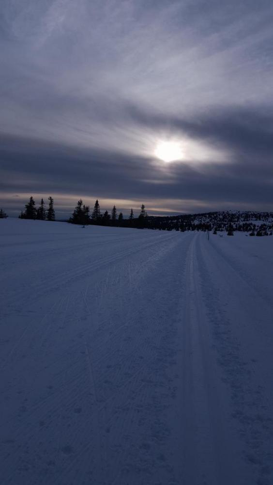 Samme tur som fredag, men i dag uten selskap. Og uten gli. Og feste. Karakterbyggende og muskelbyggende tur. Til og med Endomondodamen forlot meg på turen, etter å ha sagt fra at hun satte seg på pause støtt og stadig pga lav fart.. Hun ga til slutt opp og trodde nok jeg hadde avsluttet turen. Men det ble da en grei tur. Og siden planen opprinnelig var sofasliting i dag er jeg veldig fornøyd. Neste gang husker jeg kanskje å ta med både klisterboksen og kaffeposen også..? Rimelig ensomt i løypene i dag.