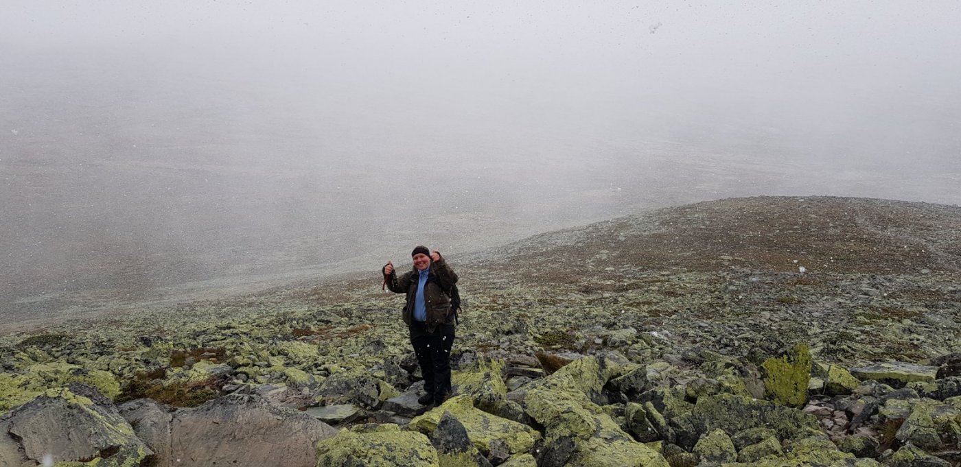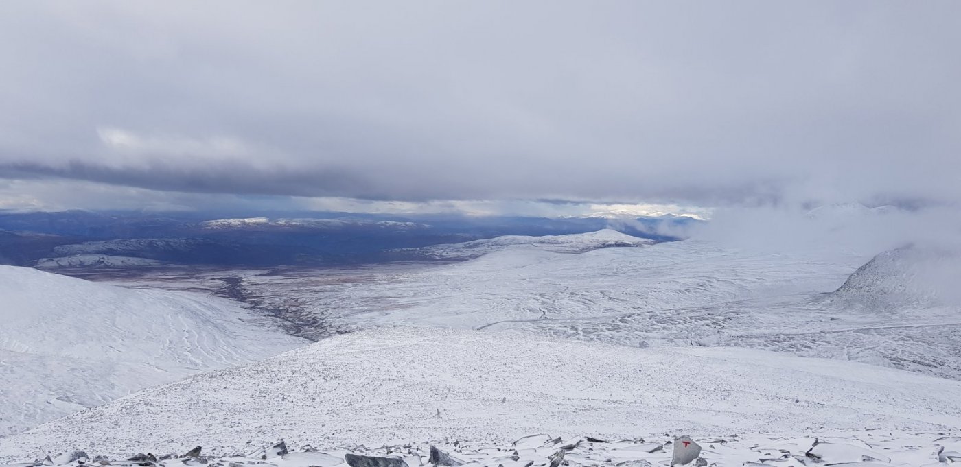 Jeg og ei venninne stakk til Rondane i helgen. Høsttur og en - kanskje to topper var planen. Det ble kanskje mer vinter, og sykkelturen inn til Rondvassbu var heller strevsom med sykkelhjul som bare spant i løssnøen (så bedre ut ved parkeringen enn lenger opp langs veien) og med gir som enten ikke orket å flytte på seg eller plutselig flyttet på seg noen minutter etter man hadde forsøkt. Veslesmeden lørdag ble en luftig affære med vindkast så vi stadig måtte stoppe opp og et par ganger også sette oss ned for å ikke velte. Men opp kom vi! Søndag var det betraktelig bedre vær og en tur opp Storronden på planen. Gikk i sol og deilig vær - lite vind fram til siste biten før toppen og oppå. Litt tåke helt øverst, men av og til noen oppgløtt så det var mulig å se utover. Helt nydelig og veldig glad vi kom oss helt opp, selv om beina mine tidvis føltes som bly. En kjapp mat og kaffepause på Rondvassbu og så rusling tilbake til bilen. Med flotte Rondane bak oss, og et soldekt og snøfyllt Jotunheimen som blikkfang mot oss. Neste gang blir det forhåpentligvis tur med ski på beina! Jeg har slitt med høydeskrekk har syntes Hedmarksvidda og Ringsakerfjellene/Øyerfjellene her jeg bor har vært helt topp. De der høyere toppene i har kunne være for det samme siden de er så fryktelig bratte, så er jeg rimelig fornøyd med helga!! Man kommer langt med et forum som dette og venner (både fra forumet og utenfor) som dytter og drar og oppmuntrer og sier de rette tingene.