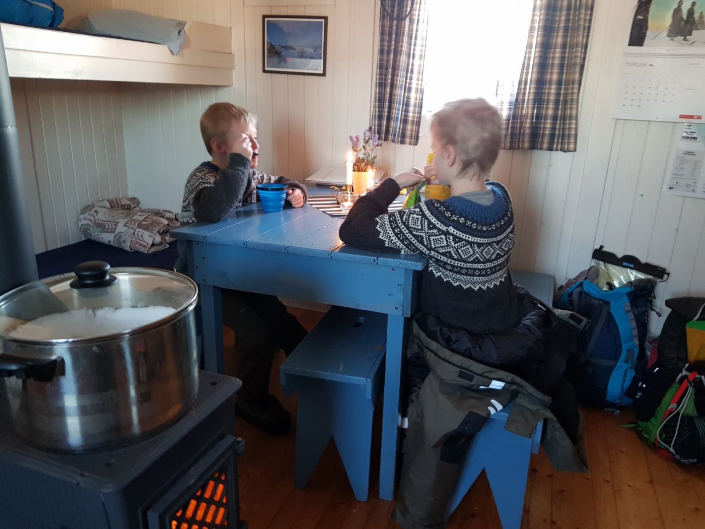 Så ivrige som begge de to er tror jeg å la de få overta er et nokså trygt valg. Her synes eldste det er stor stas å få være kokken til frokostene våre på tur nå. Og stormkjøkken er nå uansett en kjekk ting å ha i hus.