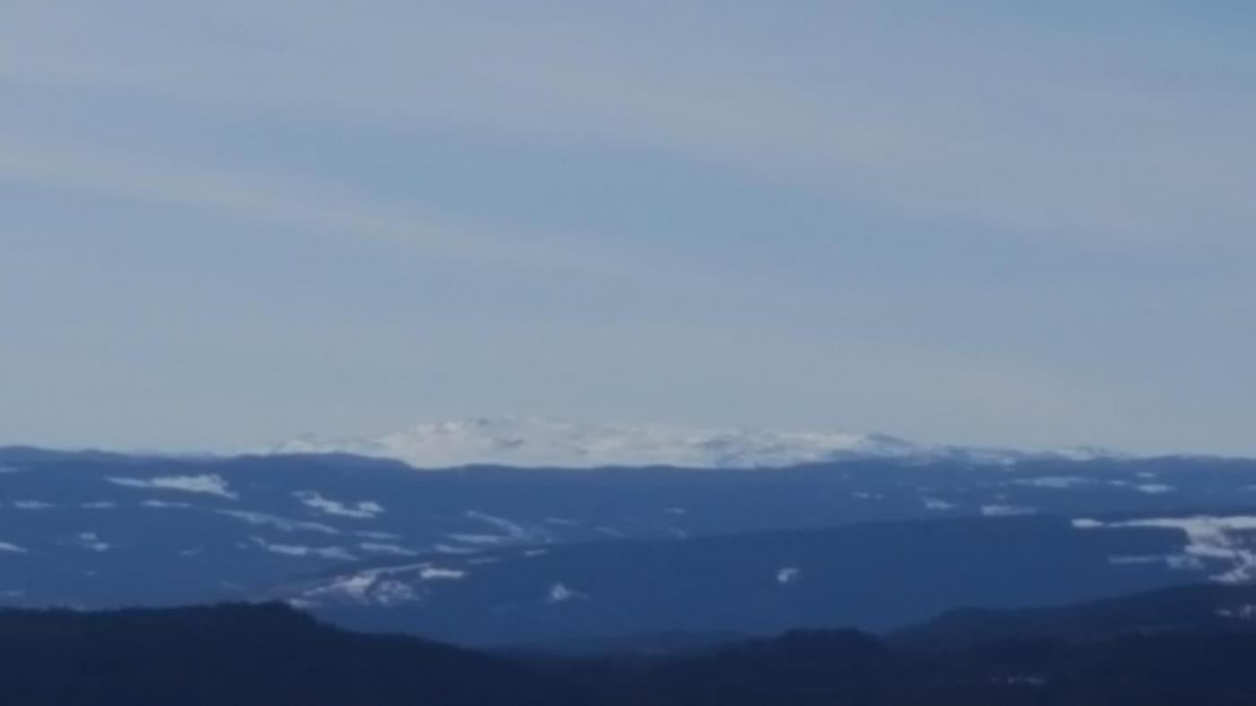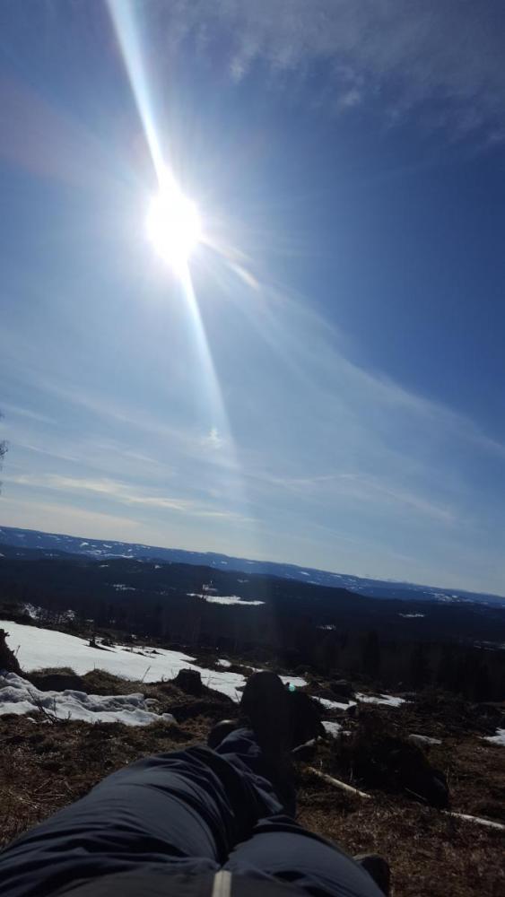 Det ser helt fantastisk ut med vinterfjell i strålende sol! Etter en uke med småsjuk kropp var endelig formen tilbake igjen til at jeg kom meg ut på en kort nærtur i går. På toppen over meg er det så flott utsikt mot Synnfjellet, i tillegg til at bilstøyen er erstattet med fuglekvitter (en av de beste tingene med våren!) Når jeg sitter oppe der virker fjellene så nærme, men de gjemmer seg bakover igjen når jeg prøver å ta bilder av de. Utrolig dårlig gjort. Men fint var det, og lettere solbrent ble jeg.