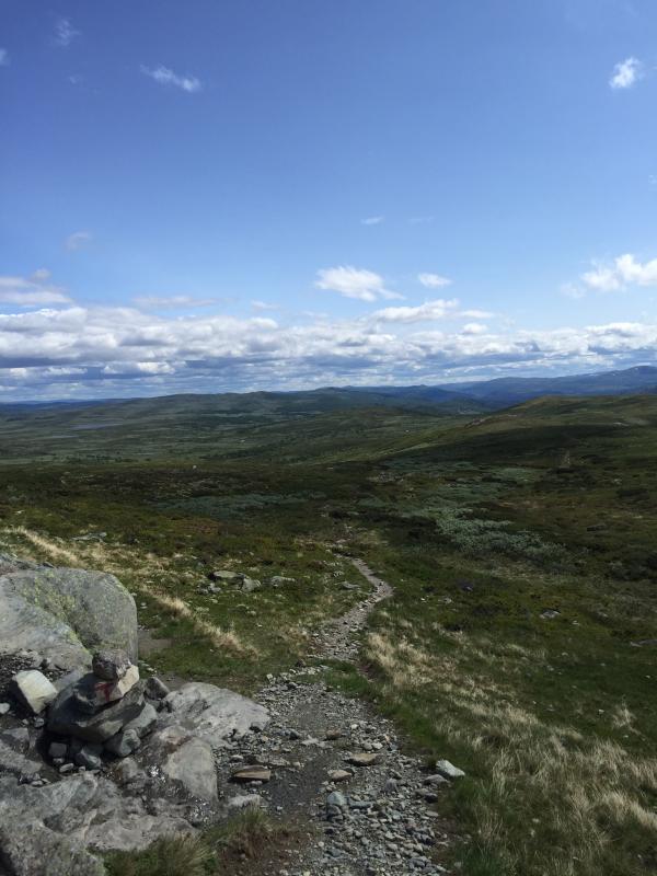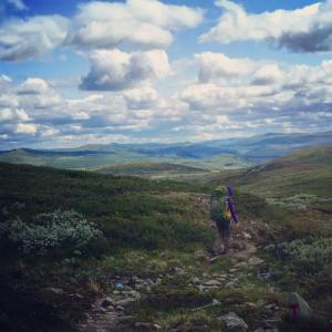 Ingen av oss har gått fra hytte til hytte før, derfor valgte vi en "lett" tur i det vi har hørt er barnevennlige Huldreheimen. Reisefølget mitt hadde bare tid til to overnattinger, derfor bestemte vi oss for å gå fra Liomseter inn til Storkvelvbu og tilbake dagen etter. Målet med turen var å gjøre oss litt erfaringer om det å gå i fjellet og oppleve å sove på en av DNT sine hytter. Jeg har skrevet et lengre innlegg om våre erfaringer som nybegynnere på bloggen min, så nøyer meg her med et kort referat og noen bilder