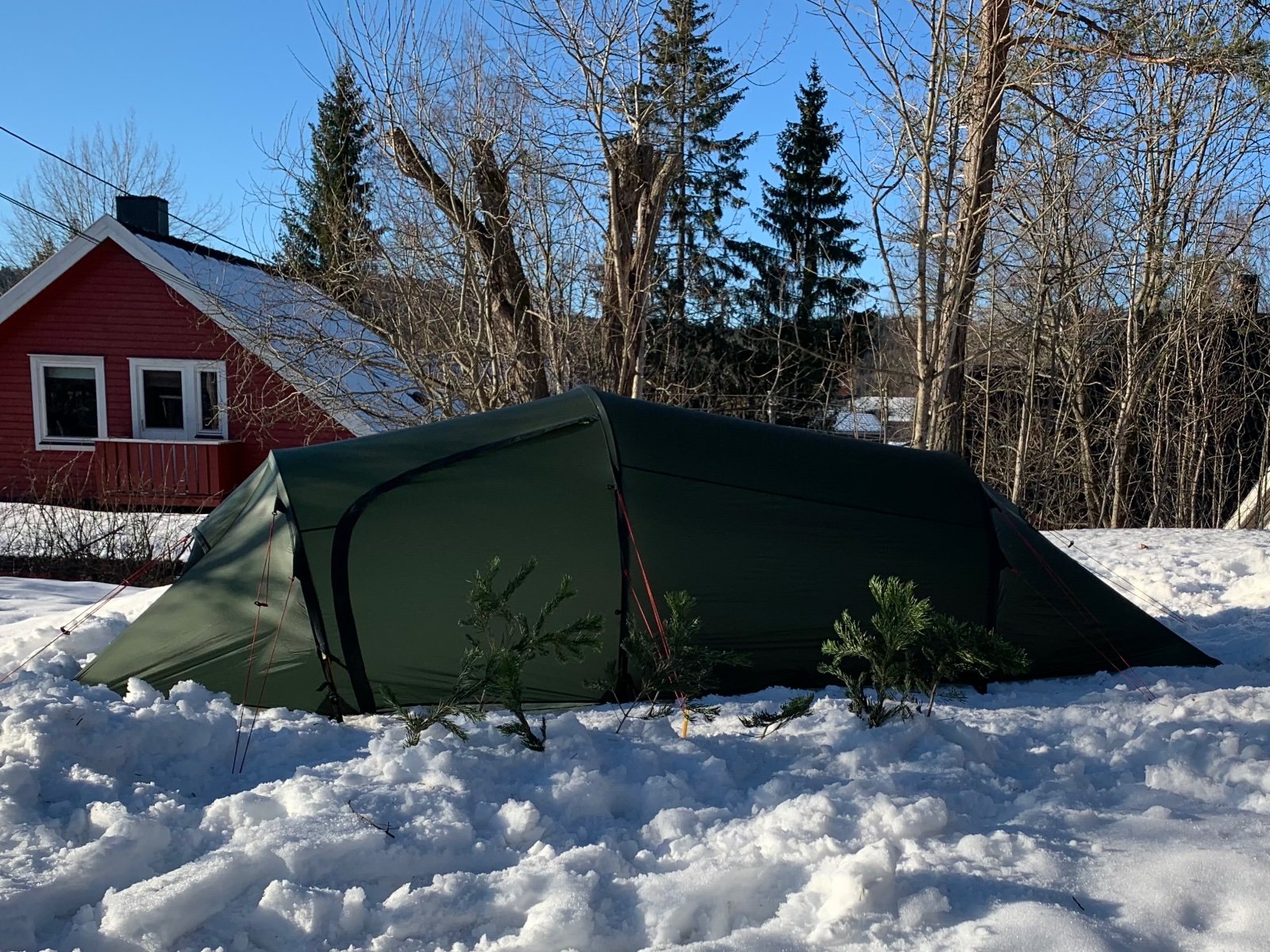 Det eneste negative jeg kan påpeke er at enden på stengene setter seg godt fast i den innsydde lommen innerst i kanalen, så man må jobbe litt for å få de ut når man skal ta ned teltet. Håper dette blir bedre med litt bruk