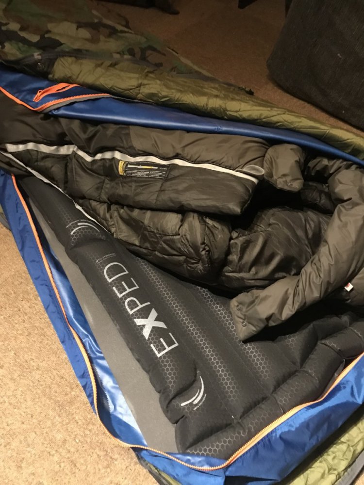Etter litt tankevirksomhet kom jeg på en relativt lur ide tror jeg... for det første ville jeg ha et nødly med på vinterturer og etter å ha hørt historien fra @whistler om at artic bedding HD slett ikke er særlig vanntett så fikk jeg en ide.... hva om jeg kan bruke en fjellduk som jeg kan pakke inn bedding i og samtidig ha en genial måte å bære den på? Og hele greia enkelt kan brukes som et komplett nødly? Kinder egg? Etter å ha sett på diverse fjellduker og mål kom jeg frem til st helsport sin fjellduk x-trem skulle passe. Fikk tak i en pent brukt på Finn til 1300,- ink frakt. I kveld fikk jeg tid til å teste konseptet og det virker veldig perfekt! Hva tror dere om dette? Har jo ikke fått testet i praksis enda... På bildene ser dere da komplett system: Arctic Bedding HD, downmat 7LW, bamse, fjellduk x-trem og Mammut Tyin Exp