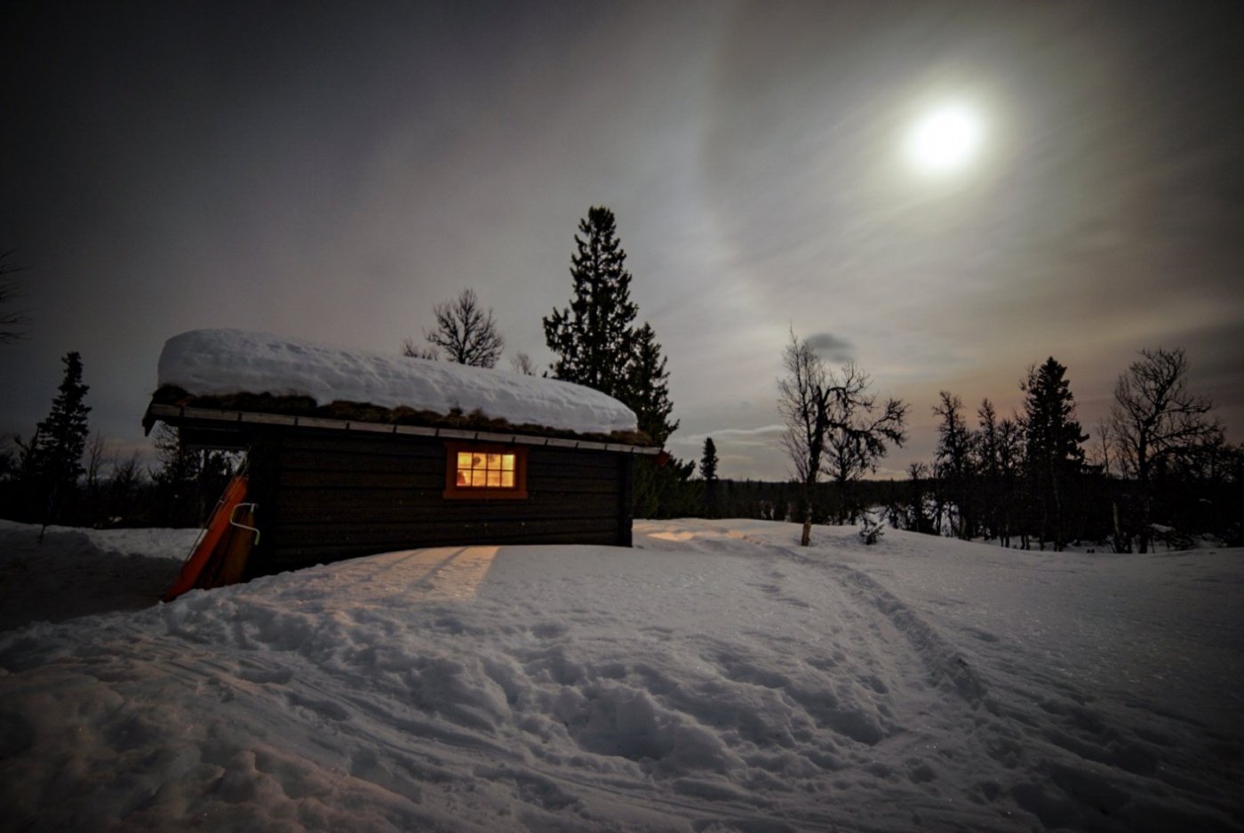 Vintertur Gausdal Vestfjell dag 2 Dag 2 på tur og skuldrene begynner å komme ned i behagelig posisjon. I dag har vi tatt en laaaang frokost i bua før vi spente på oss skia og utforsket nærliggende vann. Vi har fisket i timesvis uten resultat, men det er helt greit. Det har vært fin temperatur og vi har til og med sett sola i perioder. I morgen må vi litt tidligere opp for å rydde bua. Da setter vi kursen mot Revsjøhytta og vi får en litt lenger dagsetappe. Det blir deilig det også. Her følger noen bilder fra dagen. Fin utsikt fra utedassen i dag tidlig Optimistisk fisker Optimistisk fisker 2 Svabekkbua i månelys
