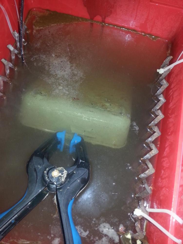 Sitronsyre og zalo fungerer fint på messingdelene. Men selve kassa må jo i elektrolysebad, eller sauses i malingsfjerner, eller under neg*rkuse på drillen. Elektrolysebad var artig, veldig artig å prøve, og det fungerte fint. Mer enn fint. Når lakken slapp, viste det seg at 111-kasse nr to, den olivengrønne, opprinnelig var lys grønn (typisk O-111-grønn), men den svarte(sorte), den var svart tvers gjennom. Så da blir det å lakkere kasse nr.2 i grønn hammerlakk, eller hva forumets medlemmer anbefaler.