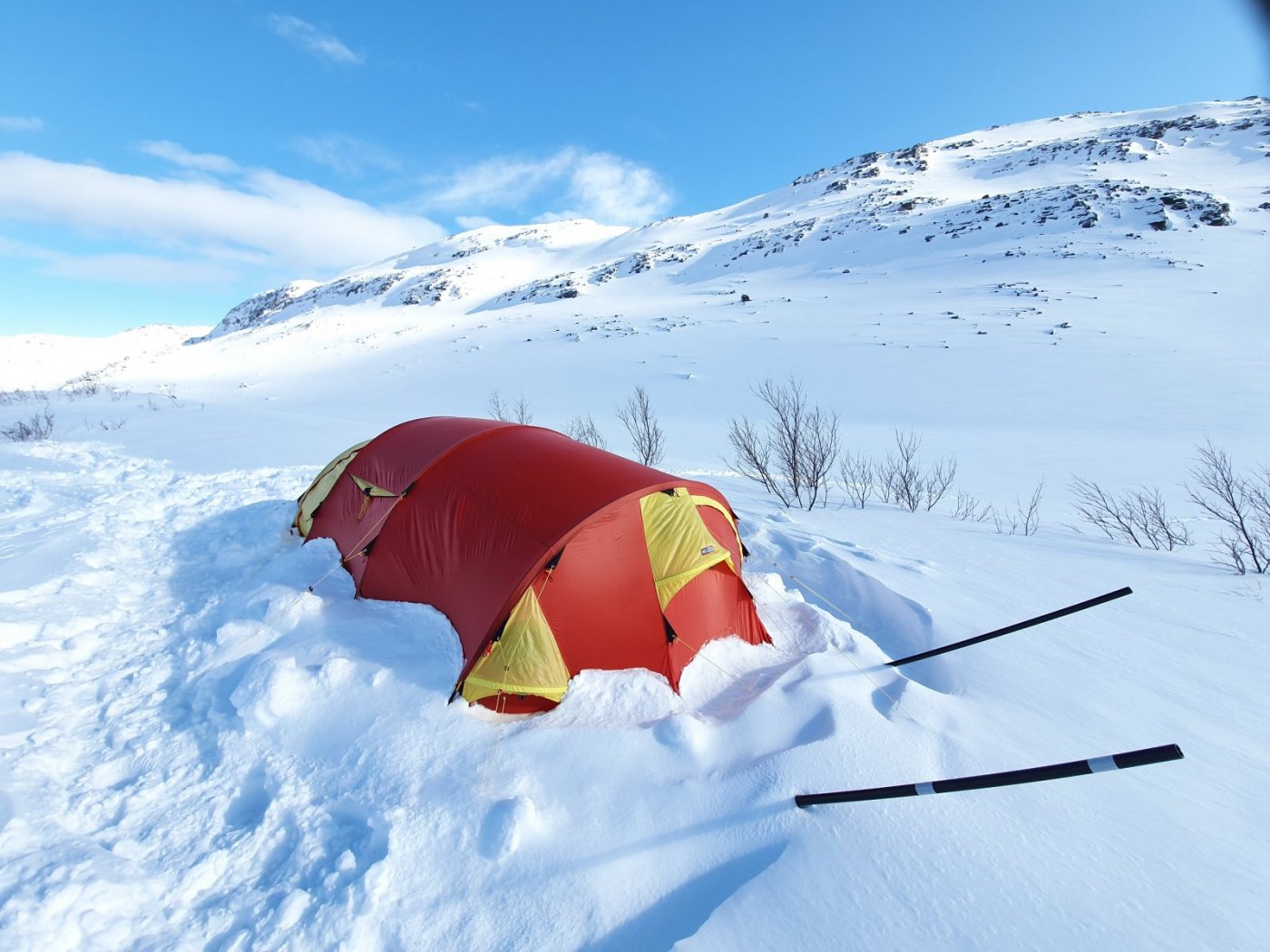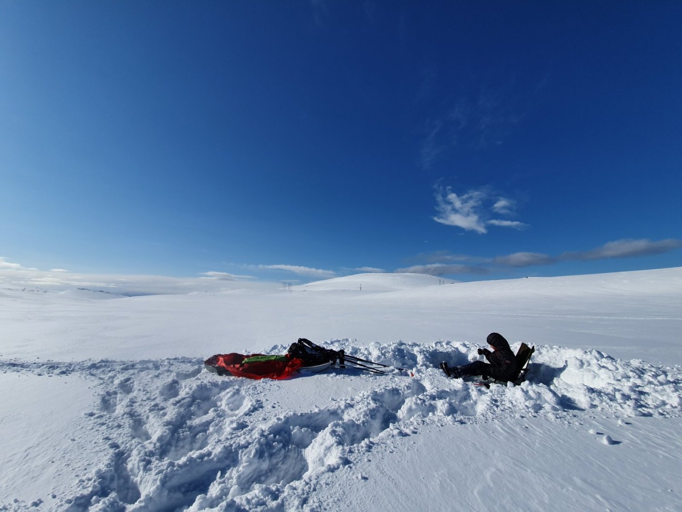 Forsøker en slags turrapport da det har vært litt lite av dem i det siste... Pga litt omstokking som følge av coronaregler osv så ble det en litt anderledes påske der det ble mindre tid med junioravdelingen for at ikke disse skulle reise for mye mellom forskjellige deler av familien og dermed utsette blant annet besteforeldre for potensiell smitte. Junior så dermed at det ville bli litt mindre ski og iskfiske i påsken og lurte på om det var mulig å få til en liten tur før påsken startet. Ettersom vi kan ta på skiene utenfor døra og gå på tur derfra ble det en ganske lokal overnattingstur, men en telttur er alltid bedre nne 2 dager i sofaen... Så da ble det å spenne på junior lillepulken og meg den noe større. Det var meldt skiftende med av og på med både snø og vind. Vi fikk forholdsvis mye av begge deler på vei innover, men fant likevel greit veien: 2020-04-04 17.36.57.mp4 Det ble litt brøyting i løssnø foran, men vi kom da etter hvert frem mot destianasjonen: 2020-04-04 17.56.17.mp4 Vel fremme er det ganske faste ritualer der vi begynner med å tråkke til en fin plass til teltet. Ved å la denne hvile noen minutter får vi gjerne et fast og fint underlag for teltet... 2020-04-04 18.01.29.mp4 Etter dette så er det å sette stormmattene skikkelig og dekke disse med snø. Junior har rutinene i orden: 2020-04-04 18.28.18.mp4 Til slutt graver vi en dugelig kuldegrop i forteltet. Når vi ikke skal ligge mer enn èn natt så pleier vi lage den ca "knedyp" slik at man kan sitte i innerteltet omtrens om man sitter på en stol med beina i kuldegropen. 2020-04-04 18.38.57.mp4 Vel på plass begynner det bli tid for litt mat. På såpass korte turer pleier junior å innvilge seg å ha med favorittstolen til tross for at den veier litt. Så lenge han trekker den selv så klager ikke faren heller 2020-04-04 19.49.47.mp4 Etter litt kortspill og radio så er det tid for å krype i soveposen. Til junior bruker jeg hans "sommerpose" nede i min tresesongspose og det fungerer meget bra så lenge temperaturen ikke ligger så langt på minussiden. Innen det var tid for frokost så hadde været snudd om til det penere. Det blåste litt til frokosten, men dette dempet seg raskt såpass mye at vi så frem til et par timer på isen også: 2020-04-05 10.01.41.mp4 Junior har for øvrig for lengst funnet ut at Paris-pulken fungerer utmerket som akebrett. Så når det blir for lenge mellom nappene så blir det gjerne muligheter for litt aking i bakken: 2020-04-05 14.28.30.mp4 Da det dukket opp flere og flere truende skyer i horisonten så ble det klart at nok et polart lavtrykk kom til å trekke inn fra havet så ble det litt hastepakking og dermed lite bilder fra hjemturen. Vi var heldigvis bare 2 minutter fra fremme da vind og snø igjen dekket det aller meste i en hvit grøt så vi kom oss trygt og greit hjem noen minner rikere,