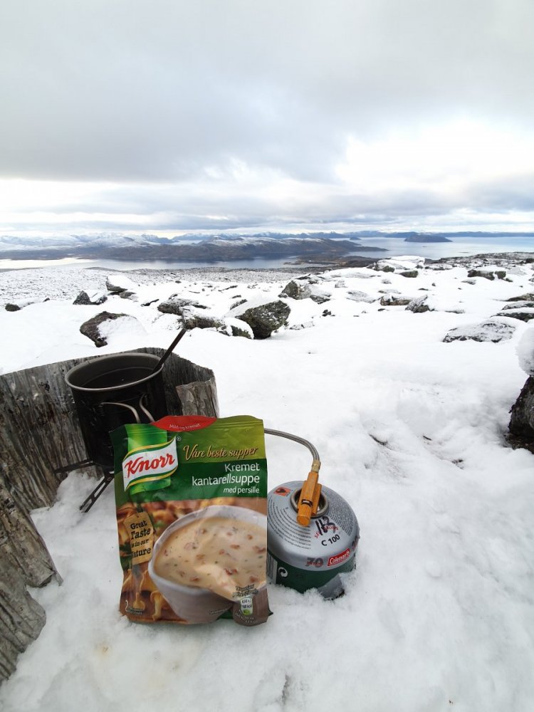 Hurtigsvar: Det fungerer sånn brukbart altså. Hvordan det fungerer med din brenner i kulde er det bare èn enkel måte å finne ut av: Ut i hagen og fyr opp en kaffekjele i kulda. Jeg driver med litt eksperimentering i å fylle gass fra halvtomme bokser over i andre bokser for å utnytte slumper bedre osv. Min klare erfaring til nå er at selv "billigblanding" som ikke er beregnet for vinter fungere bedre i de vinterboksene med papirfyll enn en boks uten. (Men fordi jeg har brennere som er laget for det og er mye på tur på vinteren så bruker jeg bensin eller parafin på de fleste turene på vinteren. Kanskje man skulle ofret litt tid og vekt på tur i vinter og ta med gassalternativ bare for å teste det ut skikkelig....) Når det er sagt så funker det å få kokt litt vann osv på selv vanlige bokser så lenge det ikke er alt for kaldt ut. Her et par versjoner av suppekoking eller kaffekoking fra jakta i høst hvor det var ned mot -5 ca: