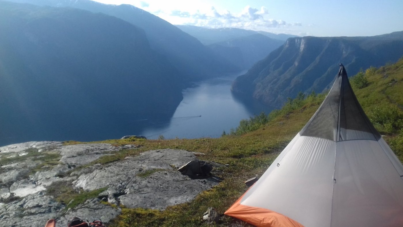 Fire dager ute. Uten takk på teltet bare myggnett og stjerne himmelen. Uten regn. Med bil til dal og med ryggsekken opp gikk på gamle stier til fjellet. Begynte turen i Sandalen (Vang). Senere dra til Aurland og teltet mellom Høgåsen og Prest over Aurlandsvangen city < --