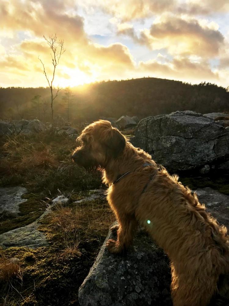 Nydelig oktobervær! Tok med valpen og en venninne litt opp i heia, lagte bål og bød på pølser, pinnebrød og hjemmelaga potetsalat. En suksess!