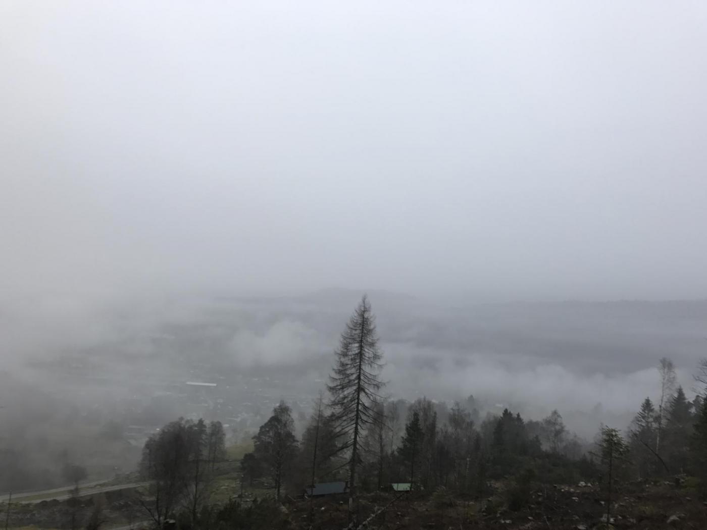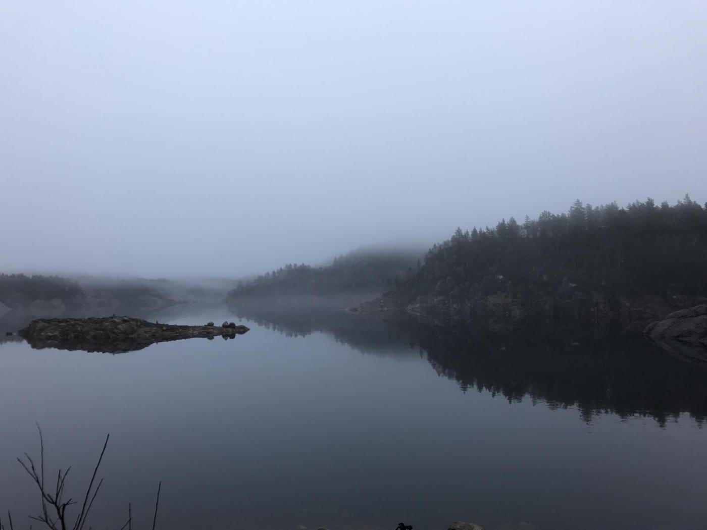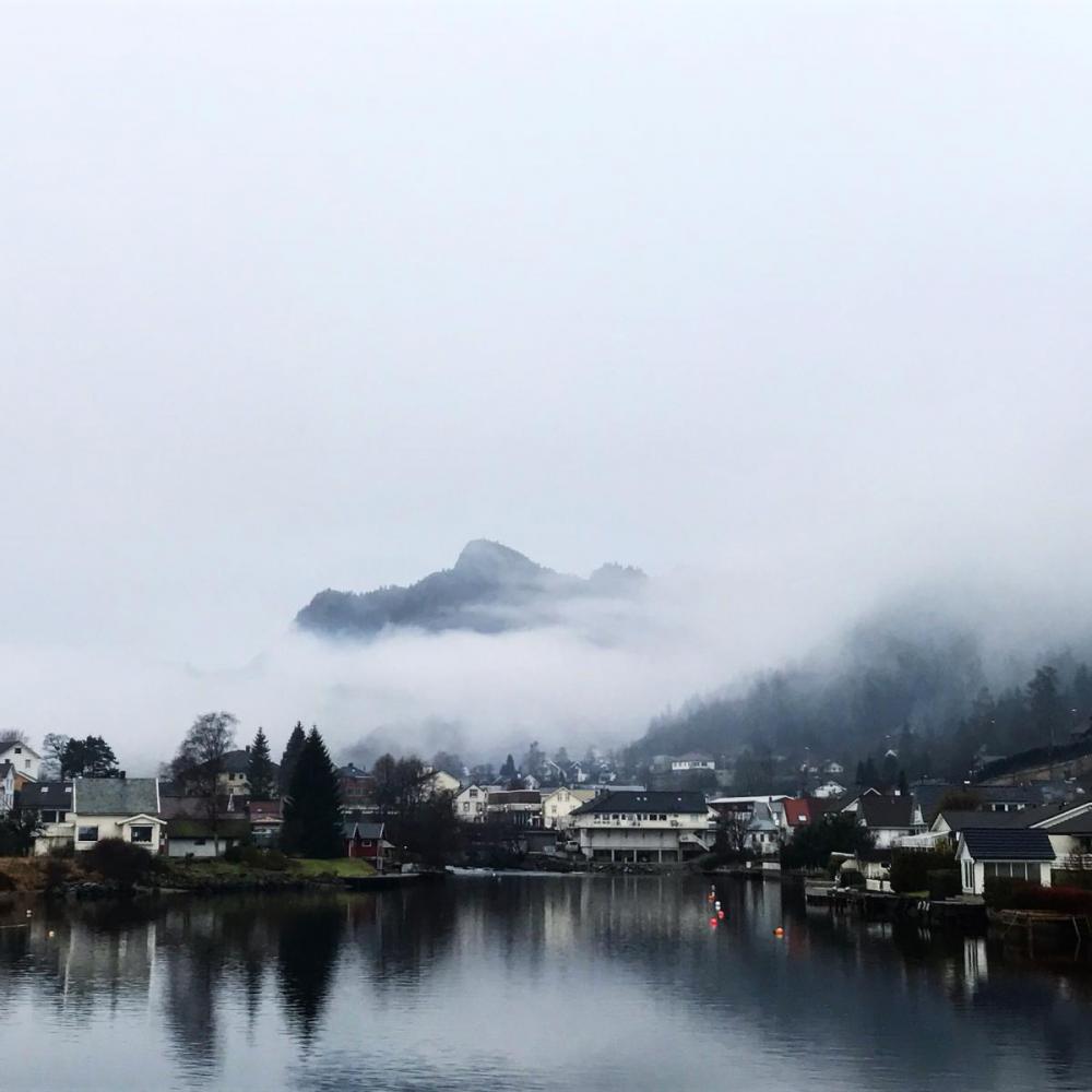 Jeg har vært så sinnsykt lat i det siste, dørstokk mila er lang, og ettersom bevege-seg-formen daler har jeg mindre og mindre lyst å gå i en oppoverbakke. Og oppoverbakker har vi nok av her. Men på samme tiden kjenner jeg at det er tungt å ikke være ute også og jeg har virkelig et behov for påfyll av endorfiner og frisk luft. Så da ble det tur på lørdag da, med mamma sin hund og drittvær. Regnet greit stort sett hele mila rundt Stølsvannet og lite og se. En heller kjedelig tur faktisk. Var liksom helt grått hele veien. Også var det ganske likt vær på søndag da (Naså/Akniben i tåken) : Og sånn går nå dagene, ser langt etter en hvit jul her på sør-vest ladet i alle fall.