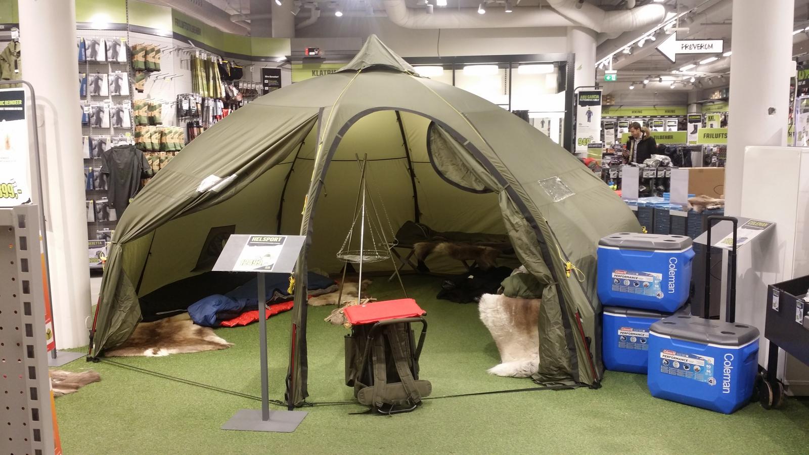 På Helsport sin hjemmeside. Så har de en filmsnutt om hvordan man slå opp Varanger Dome. Trur ikke det går noe fortere å sette opp lavvo med camp delen. 8-10 Domen koster litt da. Med tanke på om man skal ha bunnduk i tilegg. Uansett xxl er billigst på disse