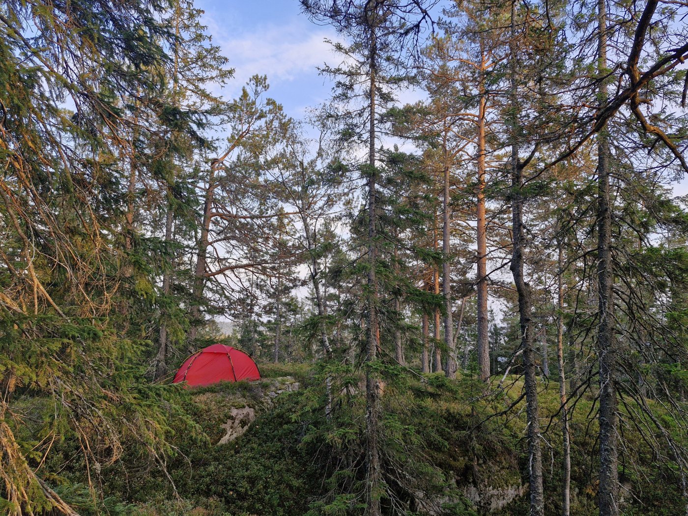 Nok en telttur med utgangspunkt i Maridalen. Pakket sekk etter jobb fredag, spiste middag og syklet hjemmefra sju. Framme etter litt under to timer. Hjemme igjen i går til dusj og sen lunsj. Gammel, naturlig skog er flott!