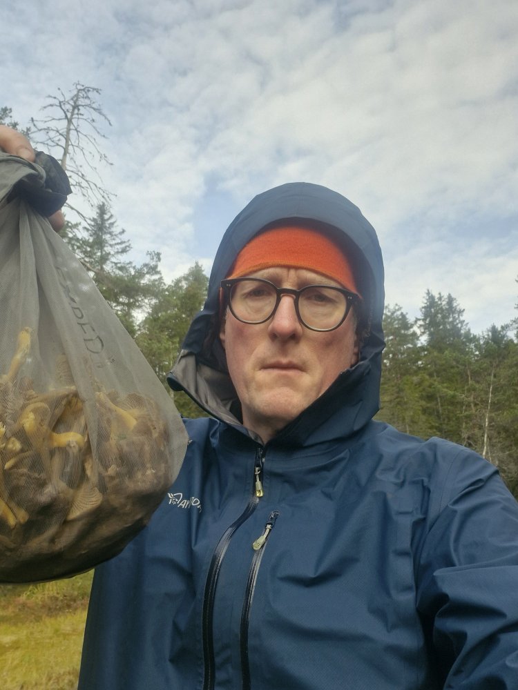 Endelig, etter to måneder, var jeg igjen i form til å sykle en drøy mil hjemmefra inn i Maridalen for å dra på telttur. Har tatt bussen for å dra på tur i mellomtiden, men det er noe eget ved å ta hele turen med egen kraft. Syklet hjemmefra litt over fem, var framme ved teltplassen etter to timer. Utsikt mot vest, like før teltplassen: Tåke på morgenen, deilig å sove lenge. Rolig frokost med te og god papiravis. Plukket traktkantarell ikke langt fra teltet, mesteparten funnet i et område på 5x5 meter. På tide å pakke og komme meg hjemover etter et avslappet døgn ute.