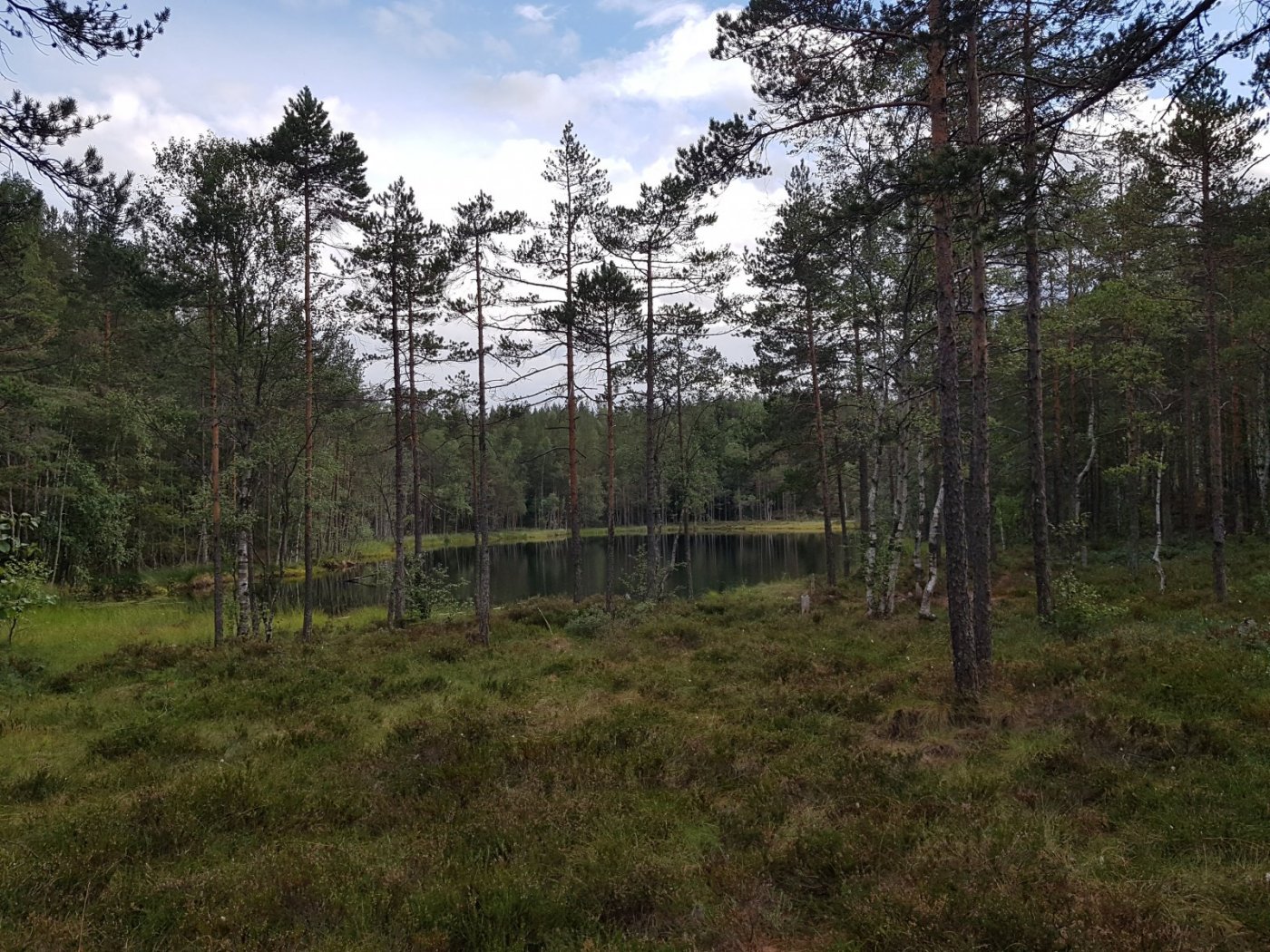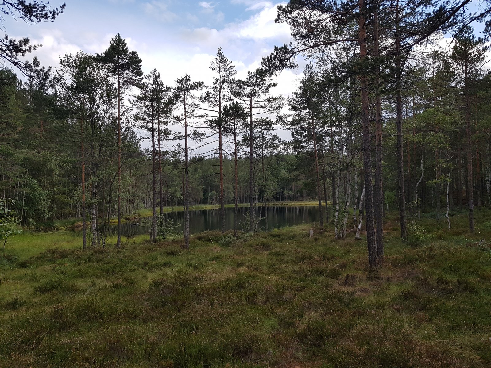 Dro med toget til Movann i Nordmarka etter jobb, gikk via Sinober og Granberget til Griseputten, hvor det ble middag i lyngen: potetsalat og Charolaispysje kjøpt på Billingen seterpensjonat tidligere i sommer. Videre via Lille Gryta (bilde) til Kjelsås. Hadde planer om å gå helt hjem til Bjølsen langs Akerselva, men da jeg kjente de første regndråpene av et varslet regnvær, feiget jeg ut og tok bussen hjem. Movann-Kjelsås er rundt en mil, det går nesten bare på fine småstier. Denne turen kan anbefales!