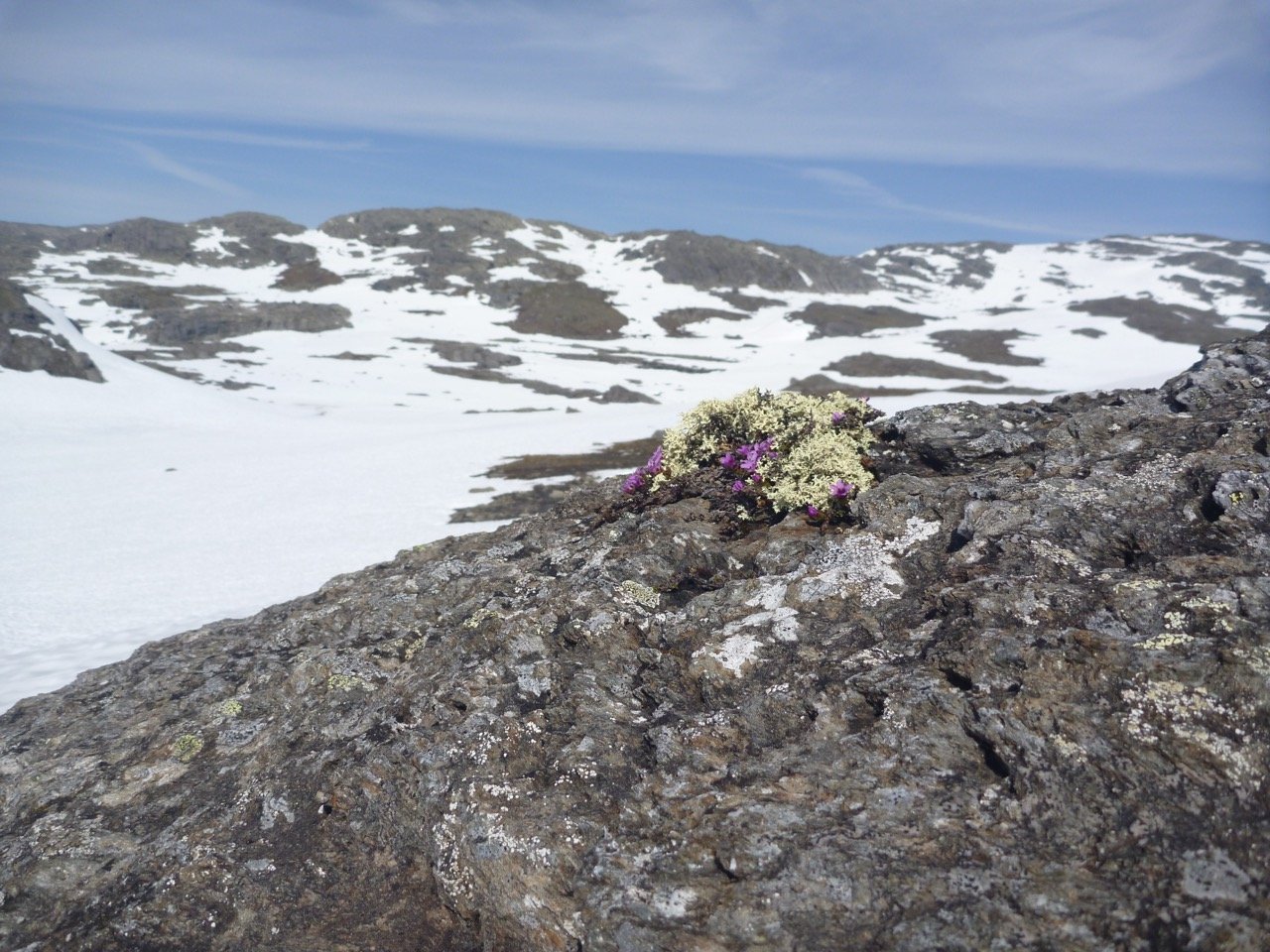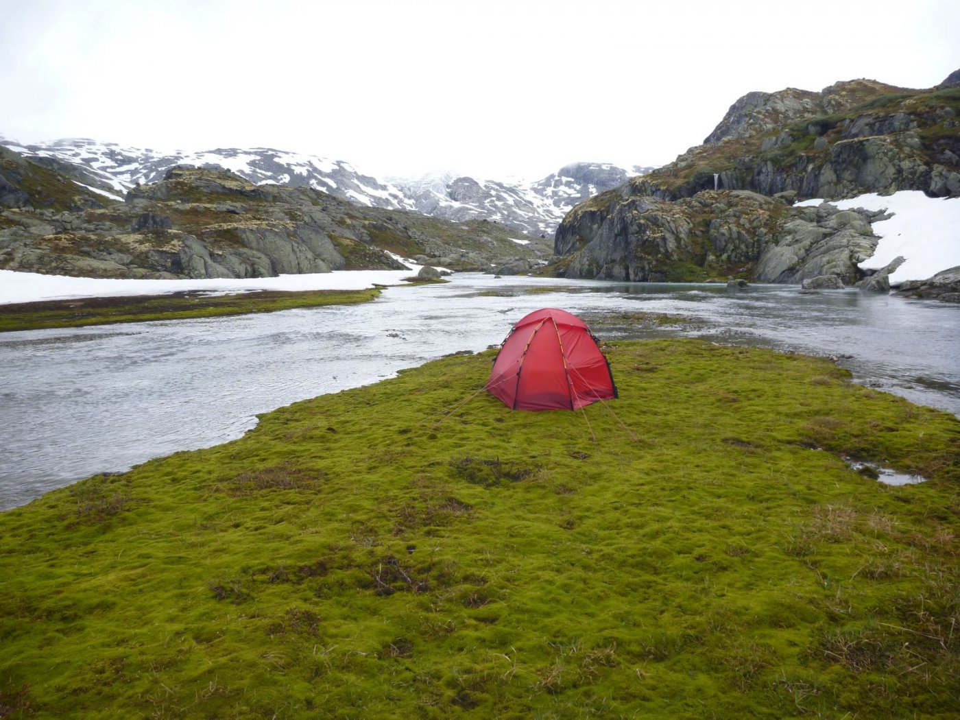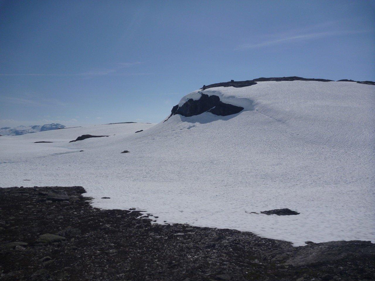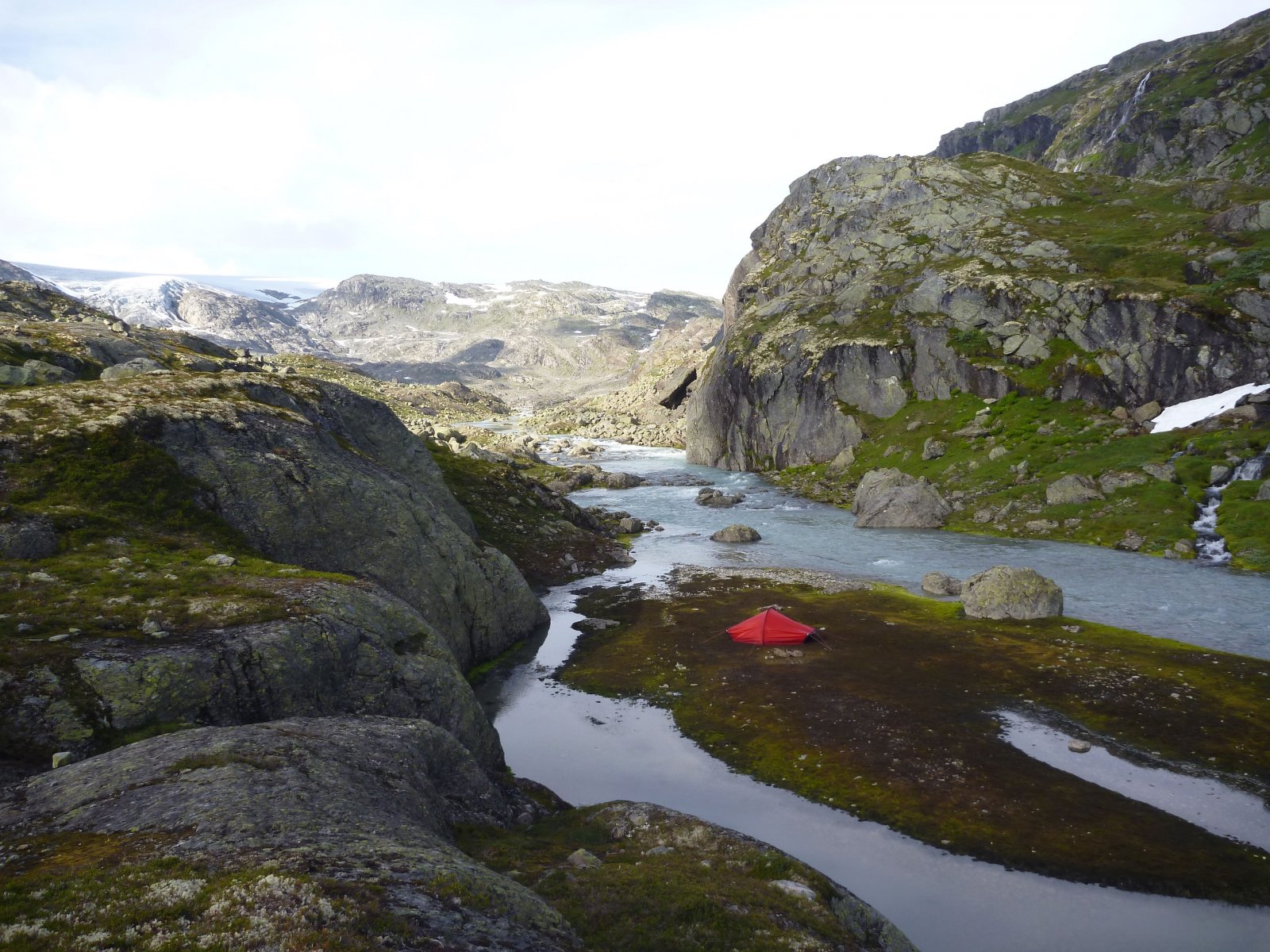 Lå to netter i telt noen få kilometer nordøst for Finse i helgen, på litt over 1500 moh, med utsikt mot Hardangerjøkulen. Knall vær, råtten og løs snø utpå ettermiddagene. Teltleir på høyden i bakgrunnen: Kveldsutsikt mot Hardangerjøkulen: Natt: Fjell og snø: Rødsildre og lav, og issoleie: