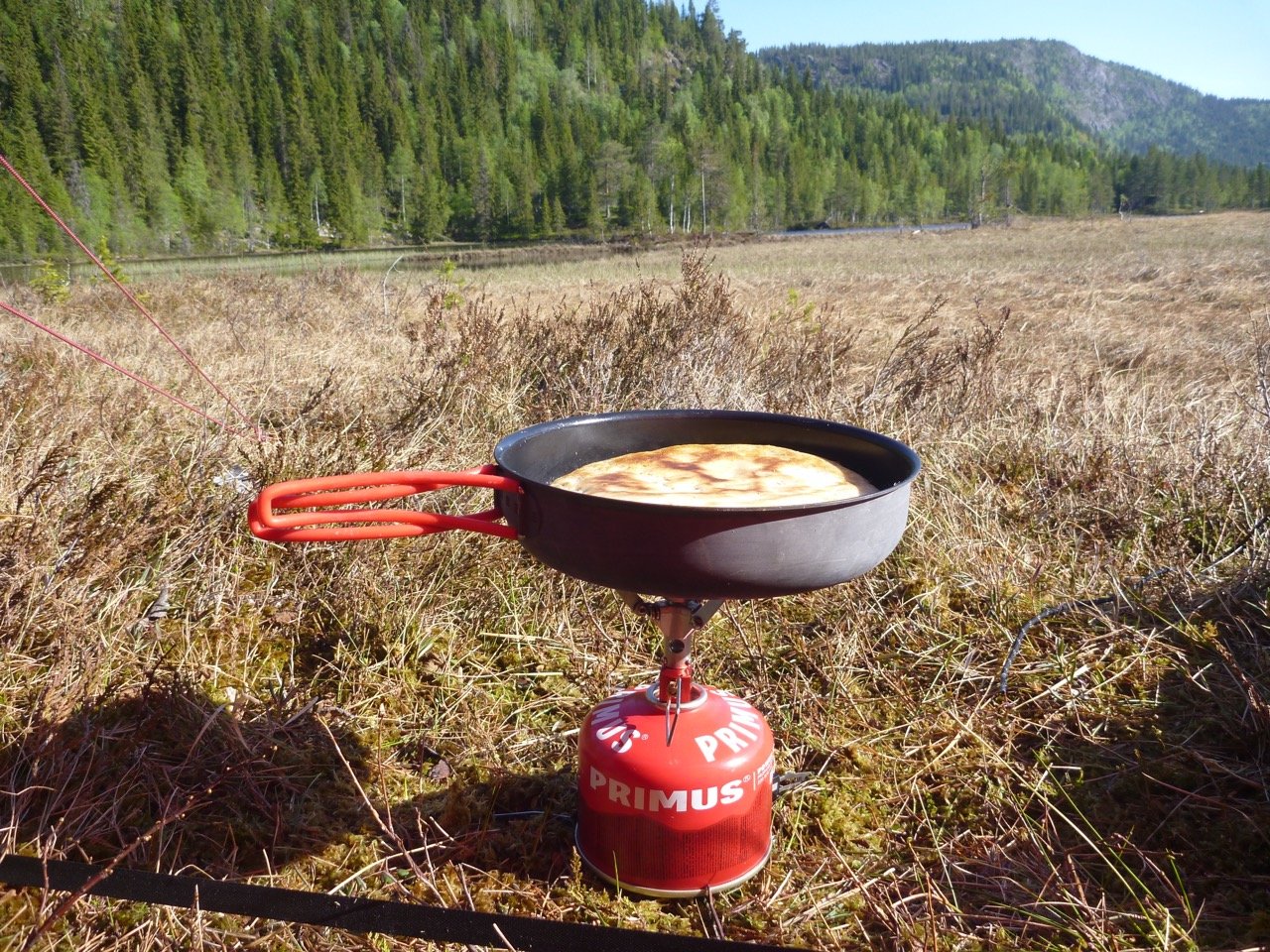 Synes ikke 3 dl havregrøt til frokost høres spesielt mye ut. Regner med du mener grøt av 3 dl havregryn, ikke 3 dl grøt totalt. 3 dl havregryn tilsvarer ca. 120 g havregryn ifølge denne siden om vekt og mål. På lengre turer lager jeg grøt av 5-7 dl vann, tror det går med noe under 200 g havregryn til det. Ihvertfall regner jeg rundt 200 g havregryn per dag, da har jeg litt å gå på om turen blir litt lenger enn beregnet. Tidligere måte jeg regne med å gå ned en kg i uka på tur, men nå har jeg oppdaget pannestekte brød! Var på en femdagers tur i pinsen, og laget brød hver dag av 200 g melblanding. Til lunsj var det ferskt brød og spekepølse. Etter turen hadde jeg ikke spist opp sjokoladerasjonen, så det ferske brødet hjalp nok godt. Brød inneholder ca. 40% vann, så det slipper jeg bære med meg, men til gjengjeld vil det gå mer gass. Har ikke finregnet på hva som lønner seg vektmessig, men det er ihvertfall mer trivsel på tur når det er rikelig med ferskt brød Vet ikke hvordan pannestekte brød vil fungere på virkelig lange turer, men for meg som går turer på opptil en og en halv, kanskje to uker, og som ikke blir skikkelig mett av knekkebrød, tror jeg det passer ypperlig.