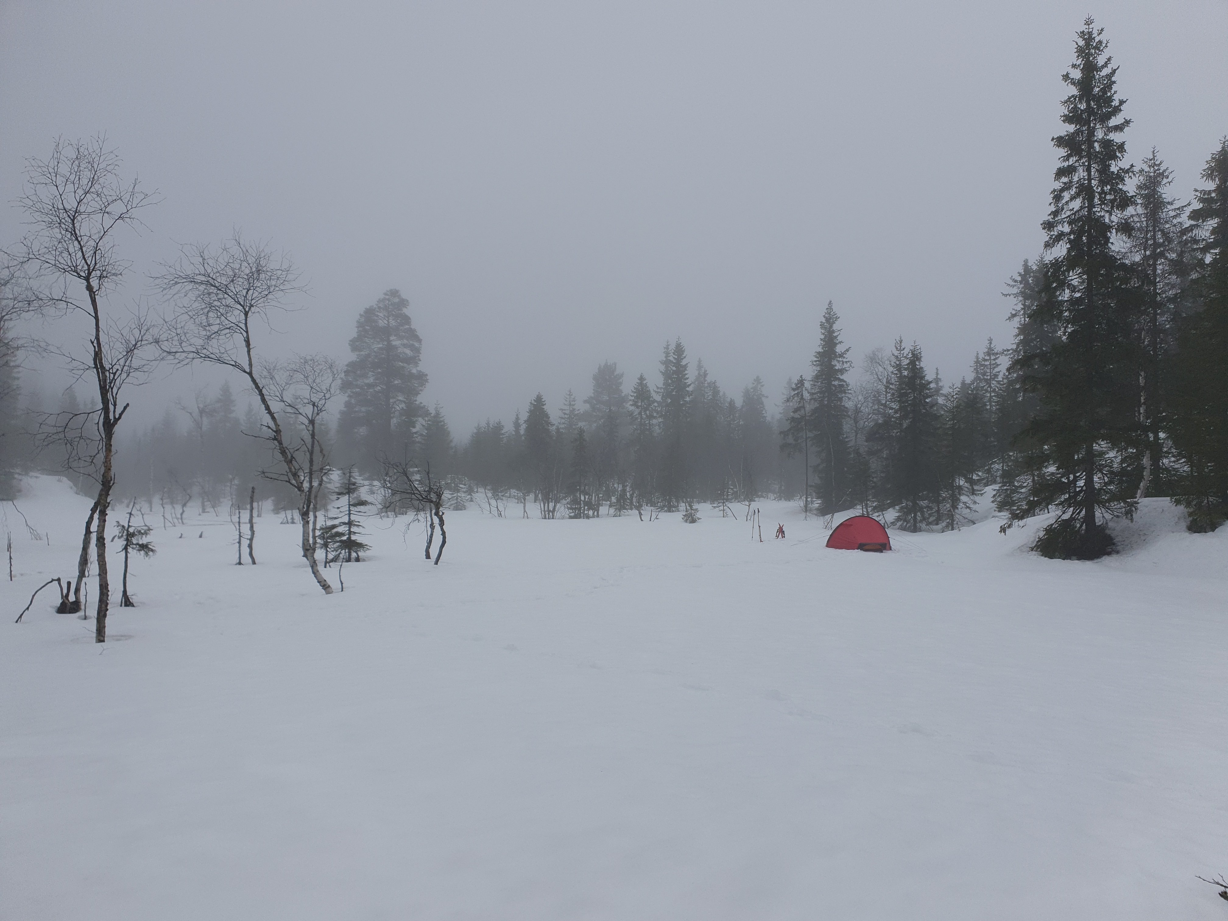 Mye grått og vått i Oslo i påsken, som også kan ha sin sjarm. Det ble to netter i telt litt innover fra Maridalen.