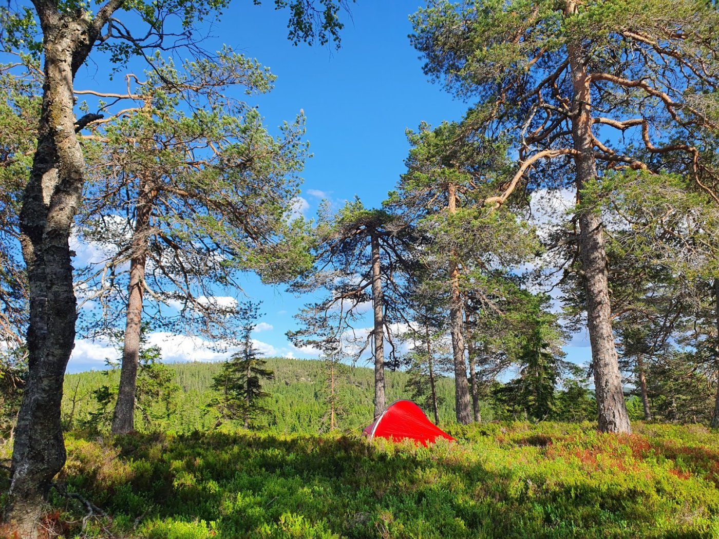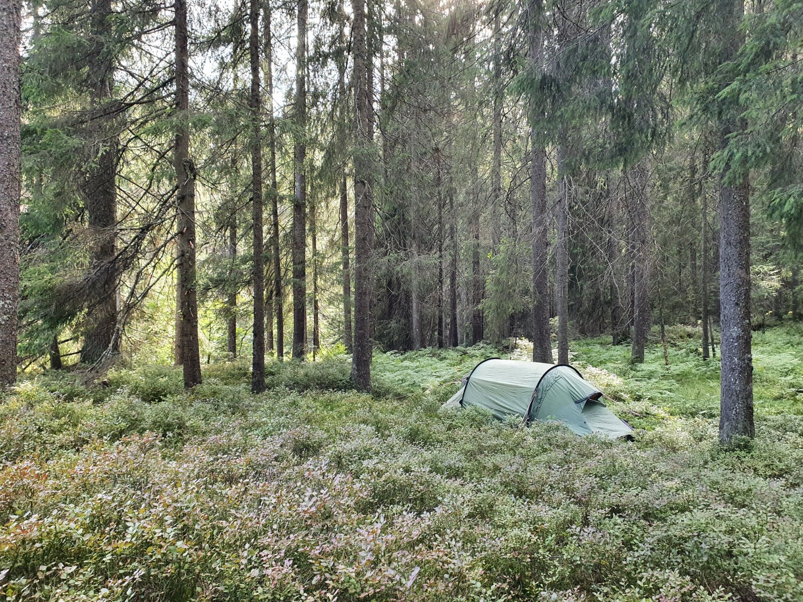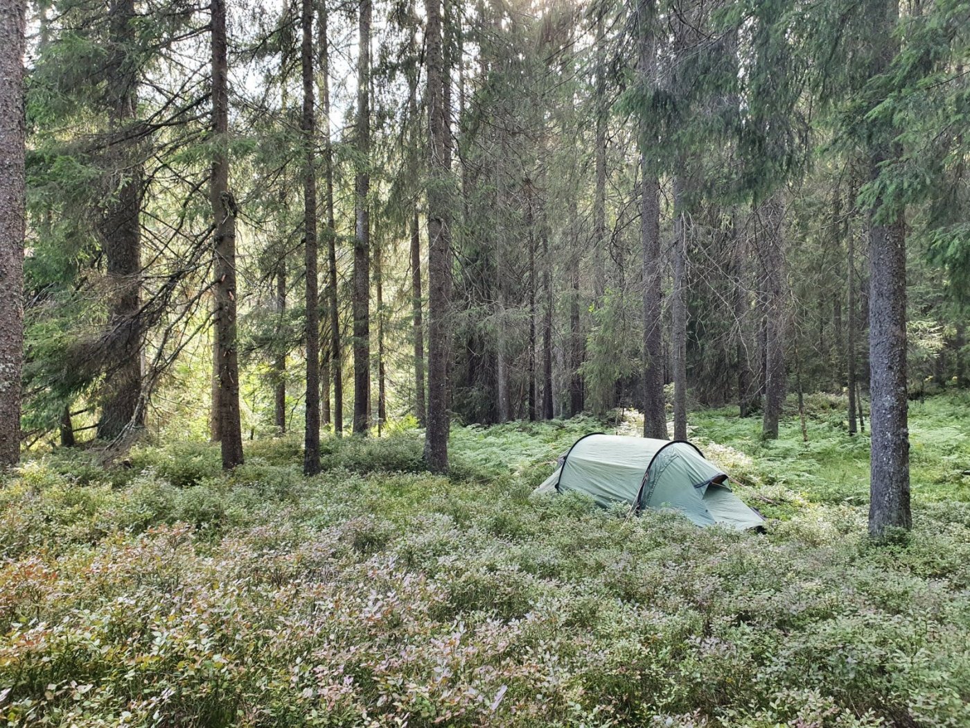 Måtte ha meg en natt ute, selv om det var bare en uke siden jeg kom hjem fra forrige tur. Tok gammelteltet (Hilleberg Nammatj 2 kjøpt i 2003 eller 2004) på en nostalgitur til Mellomkollen-området i Maridalen. Med ferskmat og øl til middagen, og medvind på sykkelturen innover Maridalen, ble det nesten luksustur.