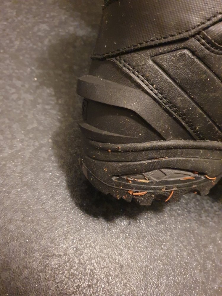 Over foten og rundt anklene er det syntetisk skinn, ikke veldig tykt, men tykt nok for min del til truger (Fimbulvetr-truger, som har litt spesielle bindinger.) Salomon Toundra er gode og varme, kanskje for varme om det bare er noen få minus og jeg er i aktivitet. Men varmen kommer innenfra, fra kroppen. Det er stort sett på telttur jeg er, og i perioden mens leiren rives og før jeg er i gang, blir det småkaldt på føttene, men langt fra så kald jeg ville blitt med fjellstøvler. Støvlene er så stive og har så gode såler at de er gode å gå med både på sti ut utenfor sti.