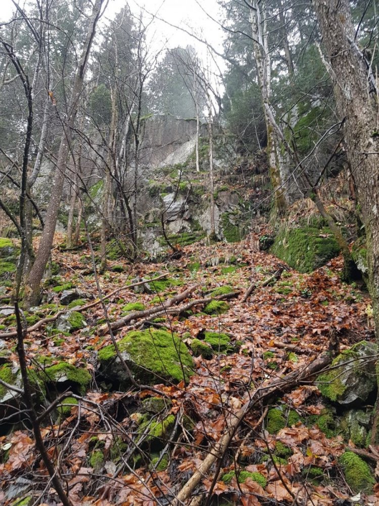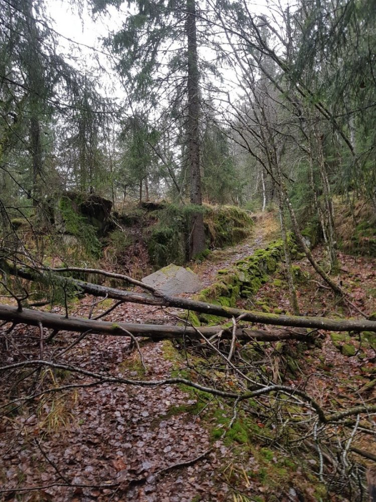 En natt i Maridalsalpene, fra fredag til lørdag. Syklet innover Maridalen i mørket i går ettermiddag, med litt luksus i sekken: romslig telt, og en øl til middag. Parkerte sykkelen ved Vaggestein, og tok raskeste vei i retning Gaupekollen. Kjølig og tåke, yr som gikk over i lett regn. Satte opp teltet litt nedenfor Gaupekollen, på en regnvåt myr. Fortsatt grått og kjølig i dag, hint av yr og regn nå og da. Returen gikk delvis utenom sti: bratt, måtte klyve et sted. Nede fra det bratteste partiet fulgte jeg en gammel og stedvis gjengrodd vei.