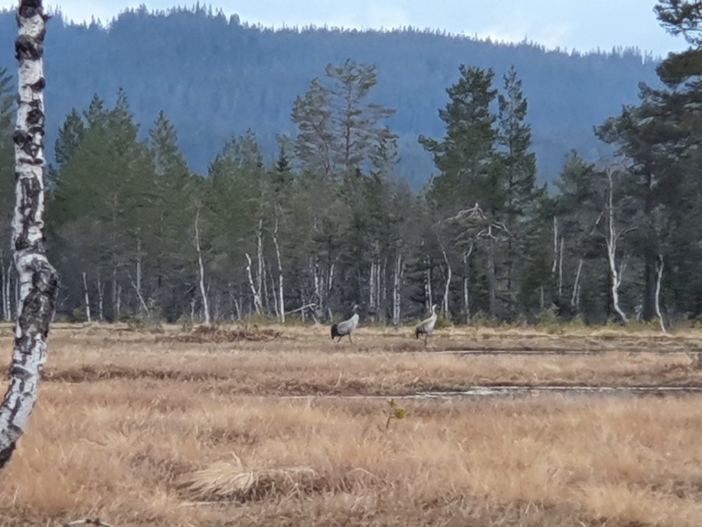 Fire netter i telt et stykke innover fra Maridalen. Varierende vær, snøflekker her og der, fortsatt snøsmelting. Så en orrhane 25 meter fra teltet for noen dager siden, den har et veldig karakteristisk utseende, så lett å kjenne igjen. Lurer på om jeg så orrhøne et par ganger også, de er litt mer unnseelige og ikke så lette å identifisere. Den store fugleopplevelsen kom i går kveld, la først merke til karakteristiske skrik, deretter synet av to svære fugler rundt hundre meter unna, det måtte være traner. Alle disse naturopplevelsene bare noen få timer på sykkel og til fots fra tjukkeste Oslo.