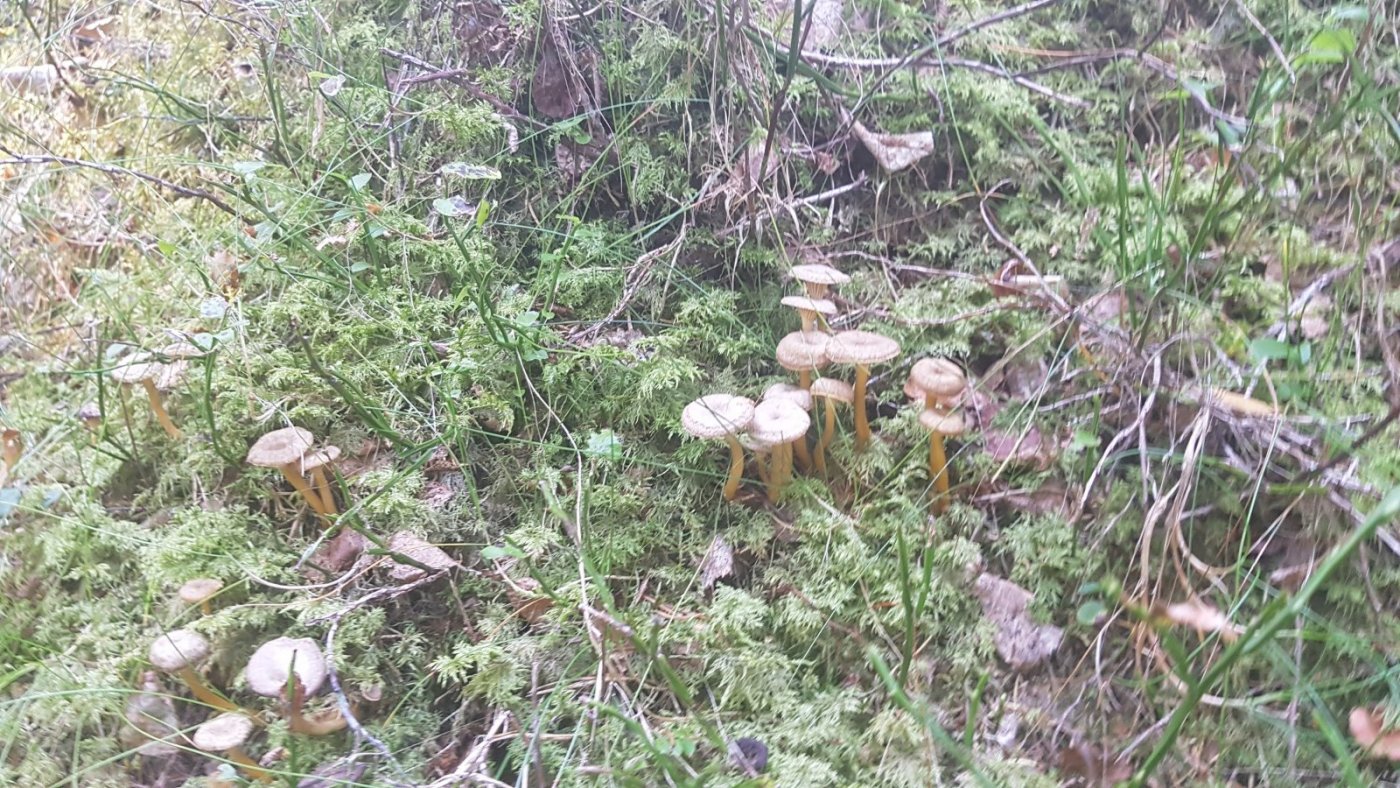 24. Helgens tur var i Maridalsalpene. Planen var å få med meg en del av kollene, som betydde at jeg måtte gå mye utenom sti, og på tvers av terrengformasjonene. Startet fra Skar, tok stien opp mot Furmuokollen, det gikk jevnt og seigt oppover på stien. Videre nordover før jeg tok av fra stien for å gå opp til Øyungskollen, småbratt, så at traktkantatellen har begynt å komme, i tillegg til endel annen sopp som jeg ikke kjenner. Deretter bratt nedover fra Øyungskollen i østlig retning: Videre opp til Raudløkkollen litt sør for Tømtehytta, ned lia, så opp mot Mellomkollen, det var så bratt at jeg måtte klyve enkelte steder, men ikke vanskelig å finne en farbar vei. Fikk med meg utsiktspunktet på Mellomkollen, her lå det to jenter i hengekøyer. Fortsatte ned til Svartputten, hvor jeg måtte ha meg en liten rast med nøtteblanding. Fortsatte østover, over Gaupekollen, så ned til Sjuputtmyra, som var dagens mål, som jeg nådde etter tre timer underveis. Grov-målte på kartet på ut.no da jeg kom hjem, og jeg hadde ikke beveget meg mer enn 5-6 km, i luftlinje. Utpå kvelden ble det nesten helt klar stjernehimmel, så et par meteorer. Mye regn på morgenkvisten, og noen tordenbrak. Jeg så bare to mygg mens jeg var i leiren. På turen i forrige uke, hvor jeg også lå ved en myr, var det lite mygg. Ser ut som tiden er inne for å bare ta med seg en tarp på tur i Nordmarka. Tok nesten raskeste vei fra Sjuputtmyra ned til Skar, på sti. Tilsammen litt over et døgn på tur.