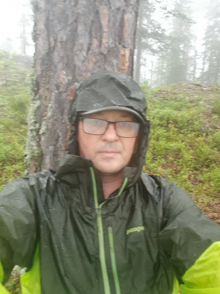 Ut på en tur i pøsregn og skodde. Måtte lufte litt i ermene for å drenere ut svetten regelmessig! Uansett kaffe måte kokes.