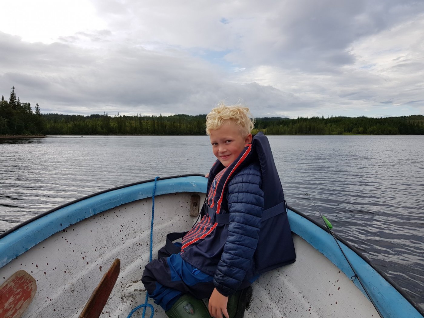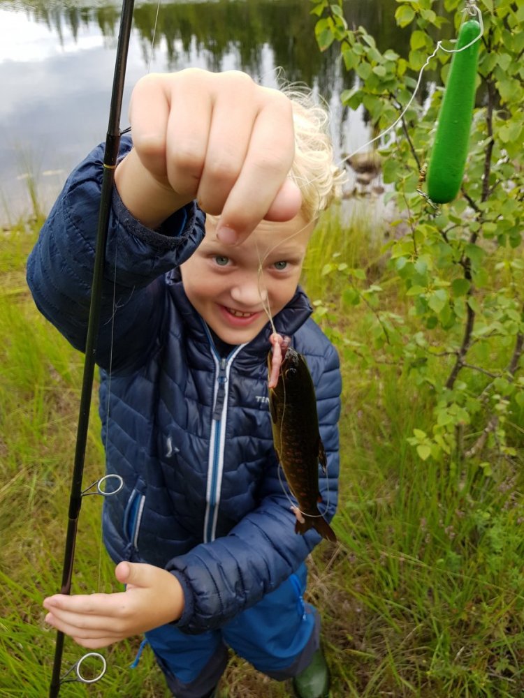 Benyttet dagen i dag til å ha med både minsten og gamlingen på fisketur. Først litt båt til utløpet av elven vi fulgte innover til neste vann. Det ble med den ene mikro ørreten, men heldigvis så var det minsten som fikk den.