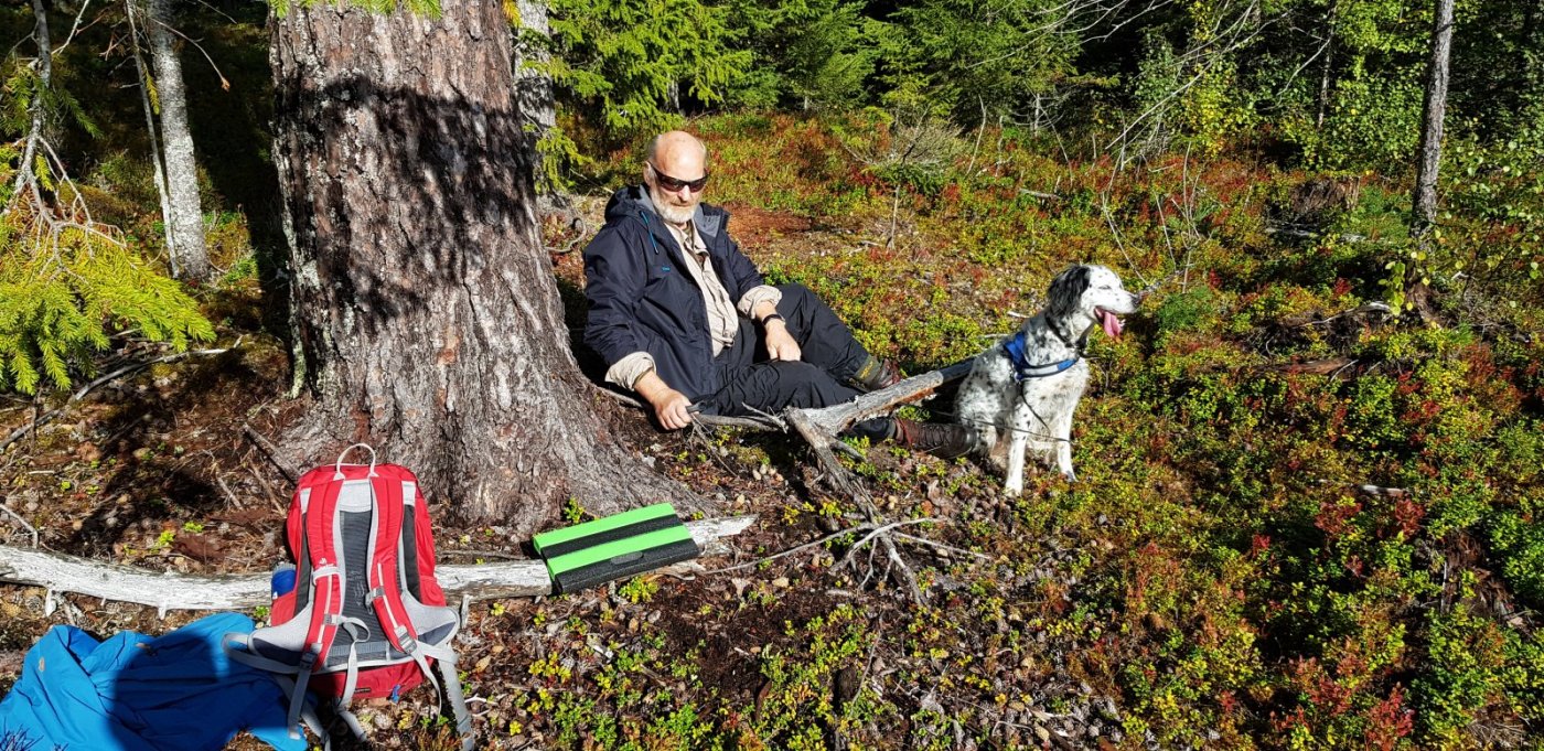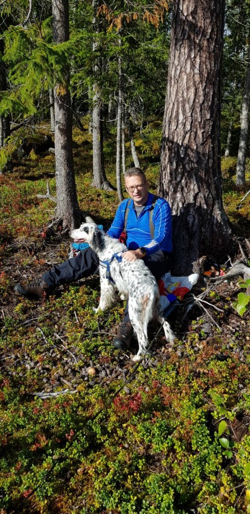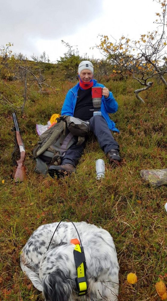 4. Planen i dag var å gå opp til base camp ifbm. rypejakten, MEN frøken Yr.no er ikke blid på oss.... så da avventer vi. Fikk derfor med meg gamlinen ( +76 år) på en liten skogstur mens vi avventer. Da er det selvfølgelig fint vær !!